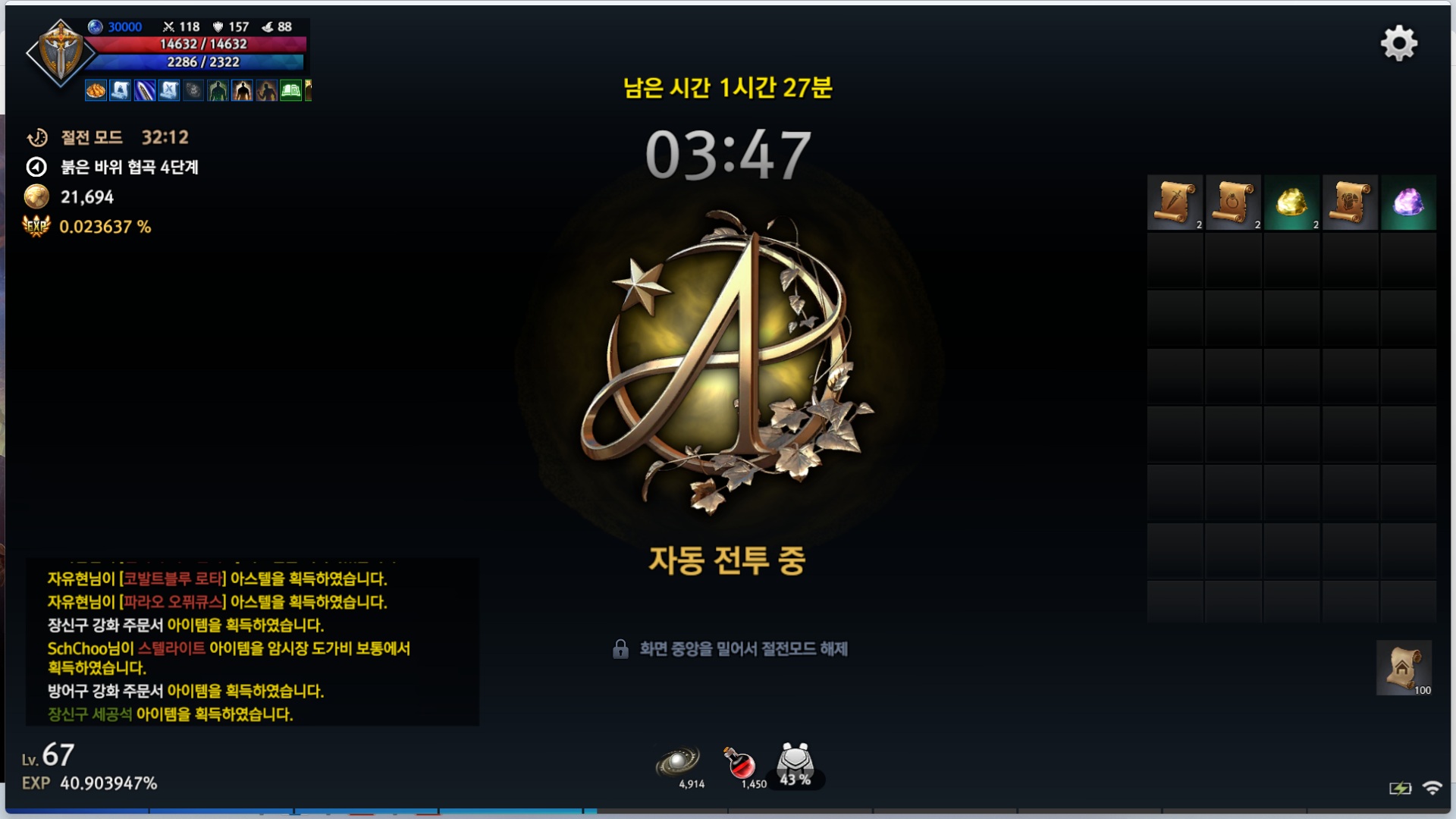 이렇게되어있는데 경험치는 늘은거맞는데 시간당 20만아덴벌었거든요? 근데 지금 시간에 6만 간당합니다