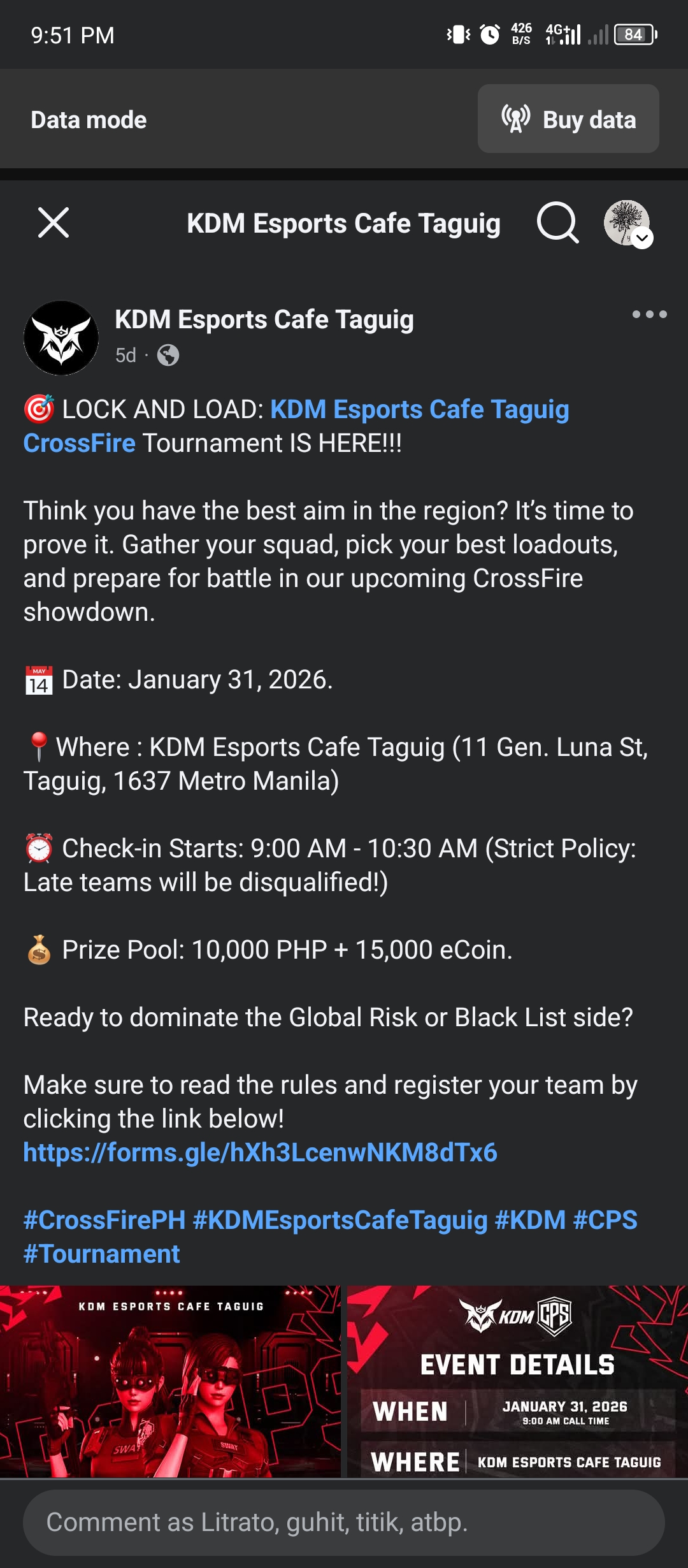 글상세Let’s play together KDM Taguig TOURNAMENT, TARA! donsah 19/01/2026 02:09 PM 19/01/2026 11:09 PM (+09:00) view count 29 View MY HOME View Posts Report Share Need member yung high rank na matino sana wag yung mema Reply 0 alarm Notification has been disabled. Newest Newest By registration By recommendation To enter a comment Log In Please Confirm Cancel Confirm