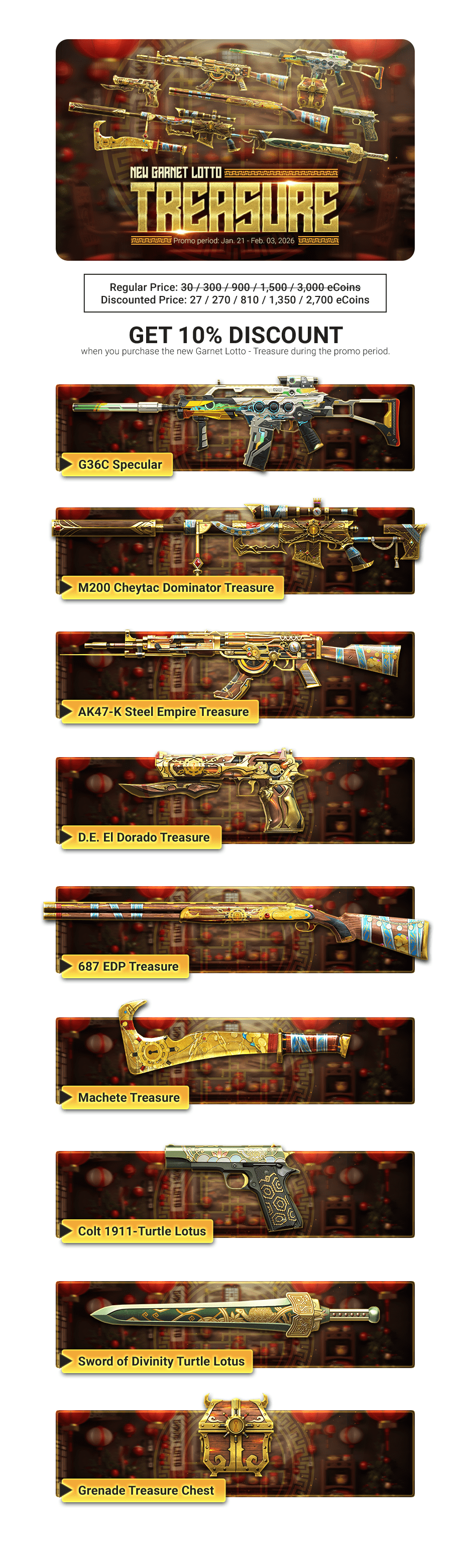 Enjoy a 10% discount on Rubies when you purchase the new GARNET LOTTO: Treasure during the promo period.