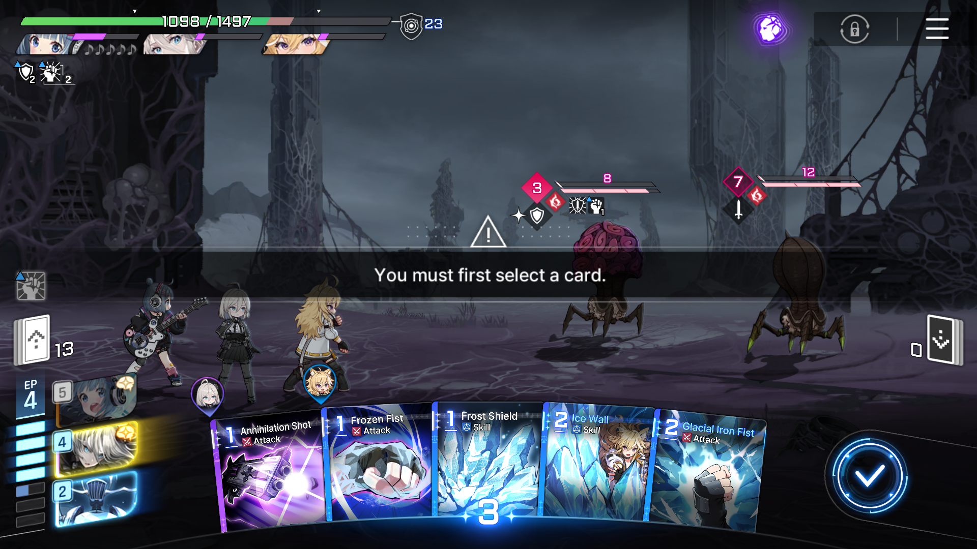 "You must first select a card"