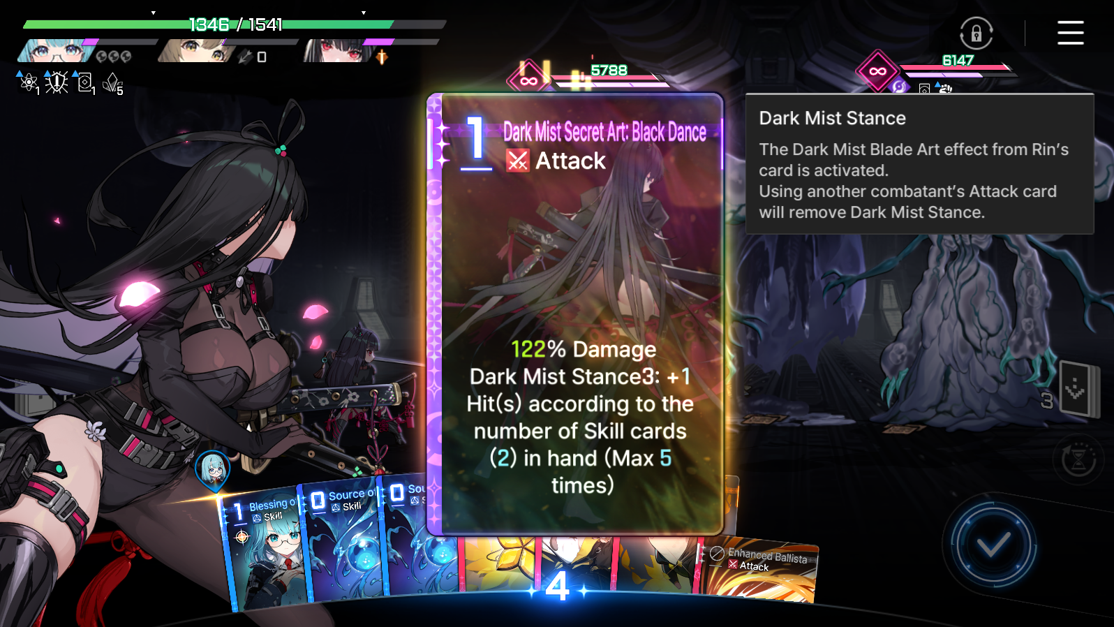글상세Bug Reports Bug: Dark Mist Secret Art: Black Dance (Skills card count) 138473878 12/11/2025 12:30 PM 12/11/2025 09:30 PM (+09:00) view count 453 View MY HOME View Posts Report Share Rin's card isn't counting properly, the amount of skills cards in hand. I used Mikas Ego to get 2 more skill cards (4 in total) that wasn't counted Reply 0 alarm Notification has been disabled. Newest Newest By registration By recommendation To enter a comment Log In Please Confirm Cancel Confirm