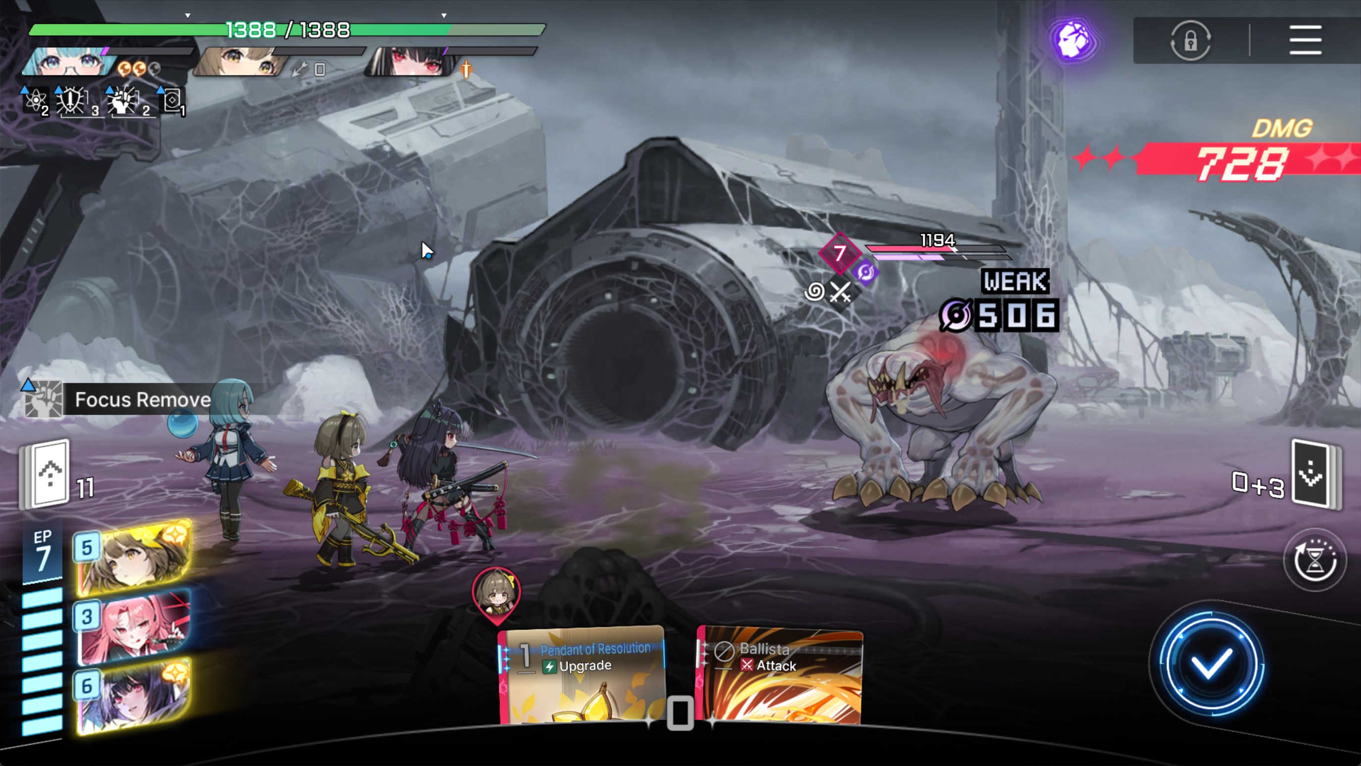 The buff in game, like in a fight, says that when doing an attack, reduce the stack of focus by 1. If this is intended to work this way, to only get the Focus buff for one singular attack, please consider changing the text of the partner in the menu to state this. I feel like I should be rewarded for only using Rin cards and the Focus state should stay active until I use another combatant's cards, rather than having to build back into it even if I am only using Rin cards.