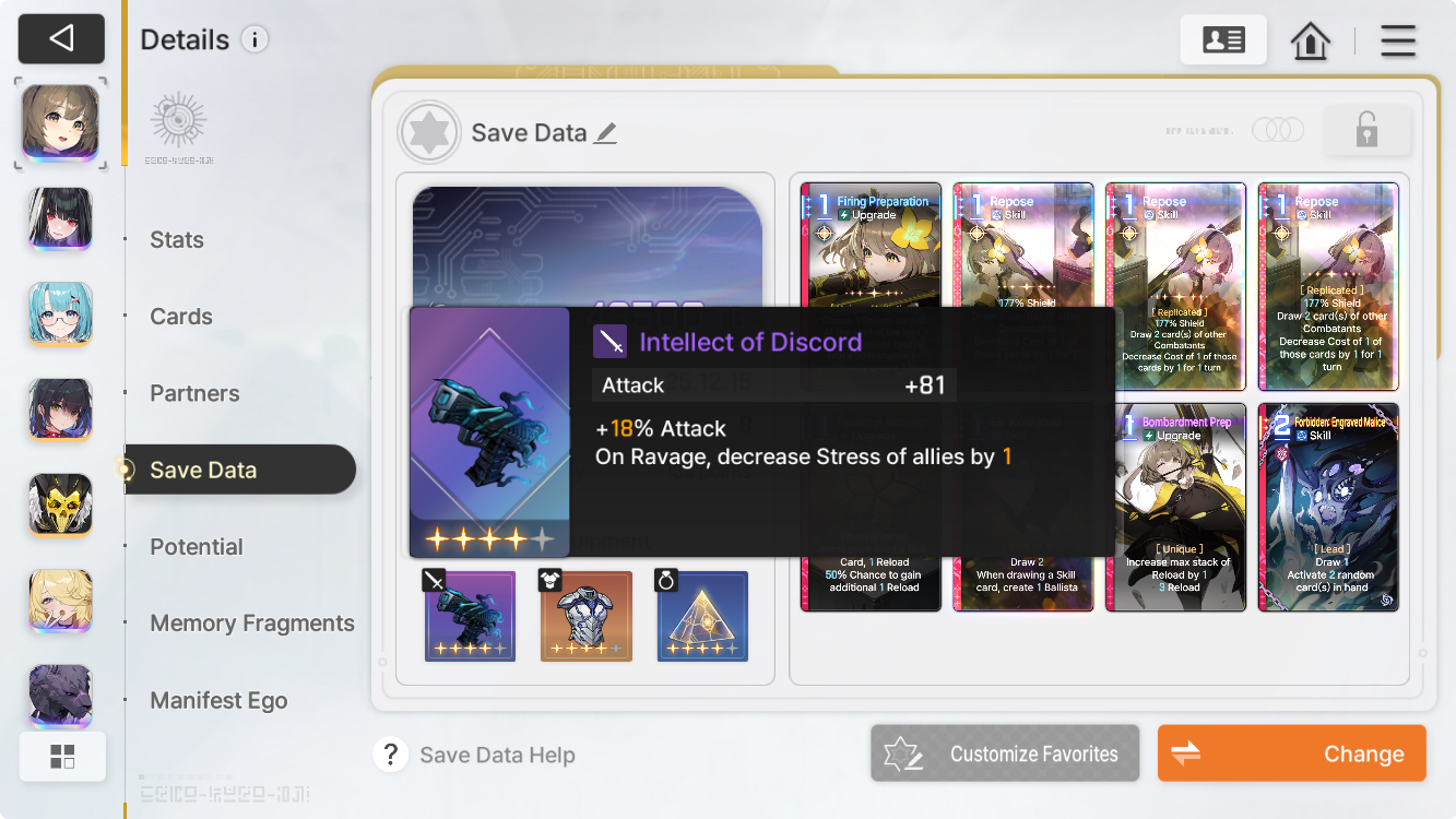 As for unsynergistic potentials that need a revision and straight up change, I'll bring up Khalipe: her 7th node requests you to build attack on her, but NOTHING she does scales off attack - it's all defense. I believe the ratio of how much the attack stat affect her skills compared to how much the defense stat affect her skills is that for every 1 point of defense, you need 7 points of attack to attain the same/similar results. So her final node requesting 700 attack, which is a hefty ask for even pure DPS characters, on Khalipe (who scales off of DEFENSE instead of ATTACK) is a hilarious design fumble - unless the devs intentionally wanted this to be just outright awful, which would be a very weird decision, but not one altogether unthinkable considering how many questionable choices they've implemented so far.