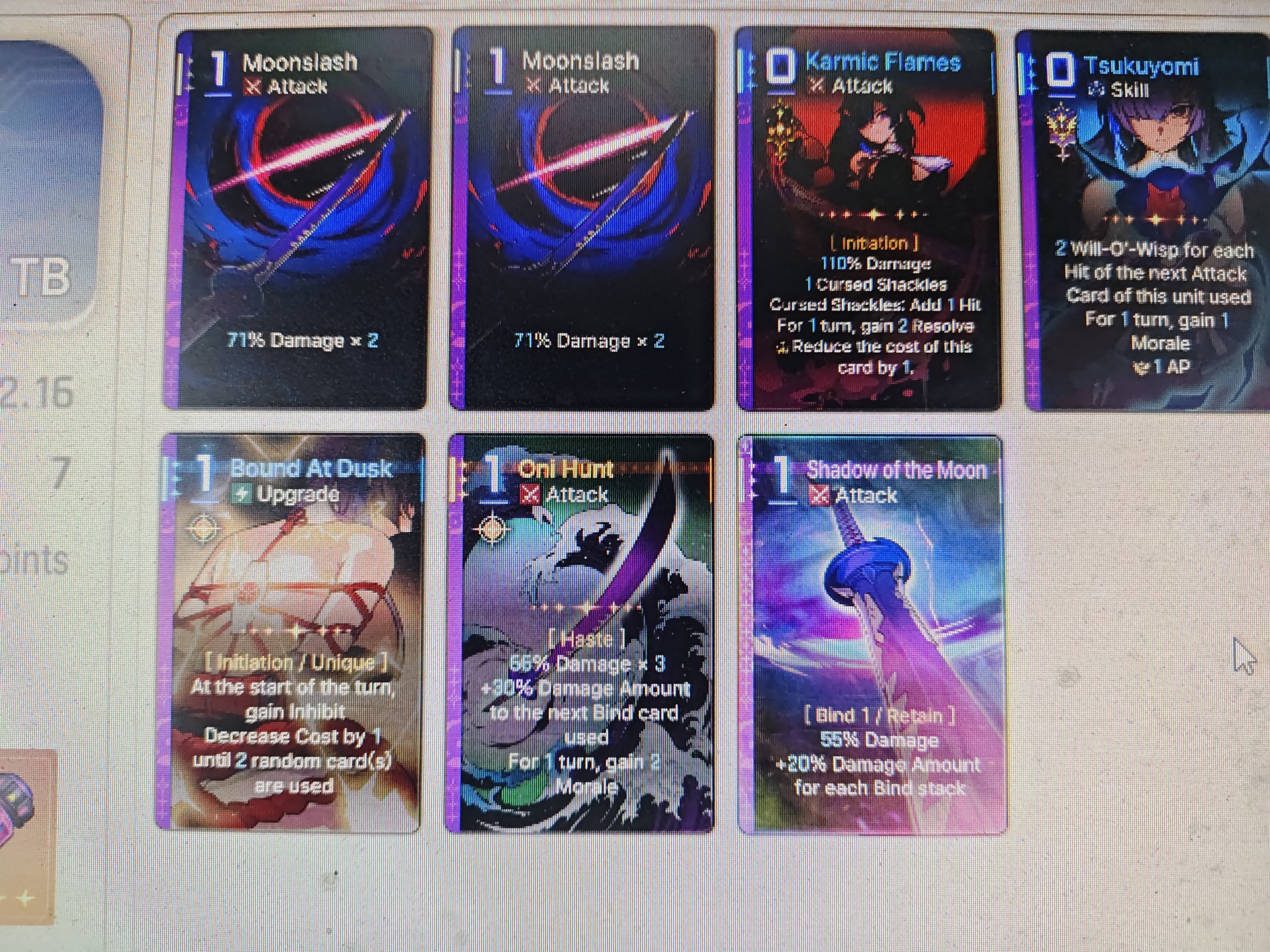 Are you sure you're increasing the number of hits and not just gaining stacks of Will O Wisp? (And even if you're increasing the count through Tsukuyomi, Note that the "+1 hit and +1 wisp on hit" effect is activated on the first card you use after Tsukuyomi); Can you show me the save data you're using? I want to check something in your epiphanies.