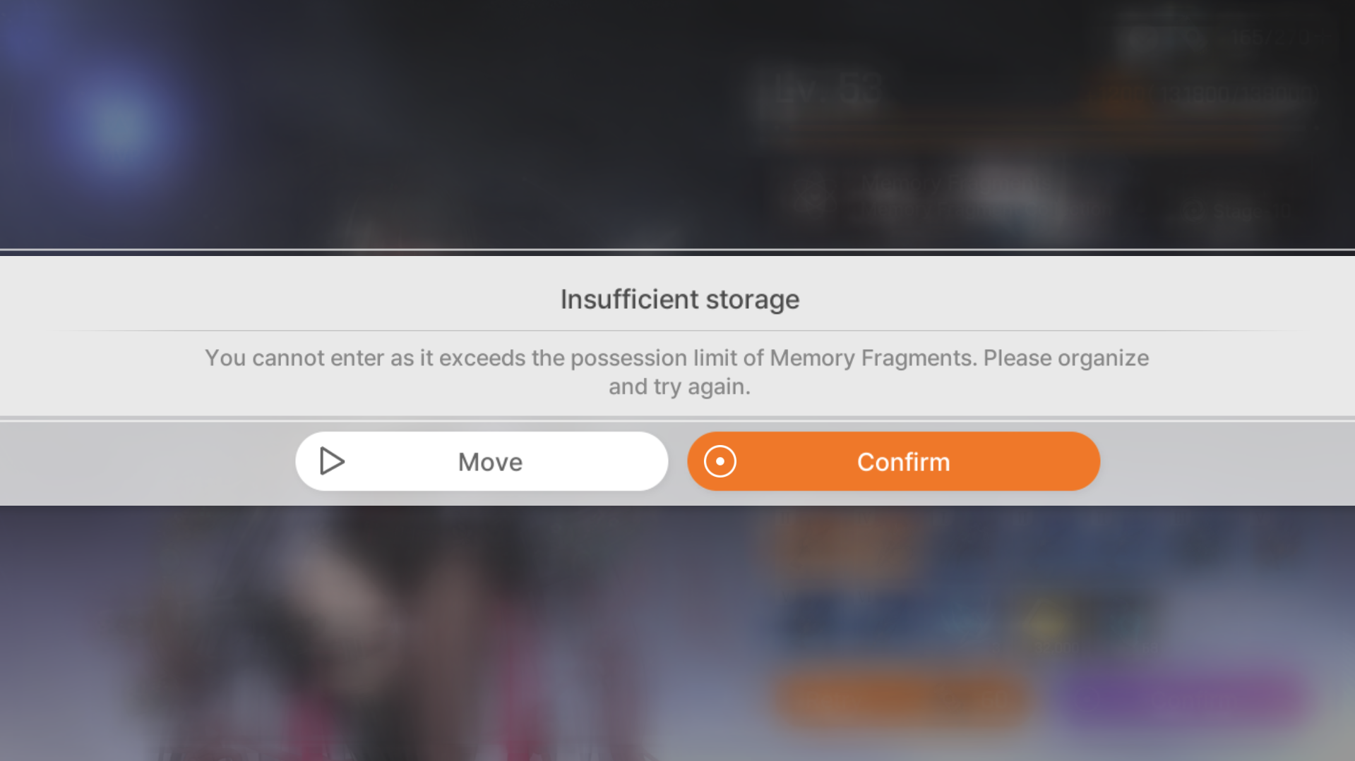 To make it even worse, once you clicked "move" button, you don't get to go to the dismantling memory fragments page and instead to the general storage... It should be common sense that it would move the player INSTANTLY to the dismantling memory fragments page. Like, what? You expect us to damn craft another memory fragment when the memory fragment storage is full?
