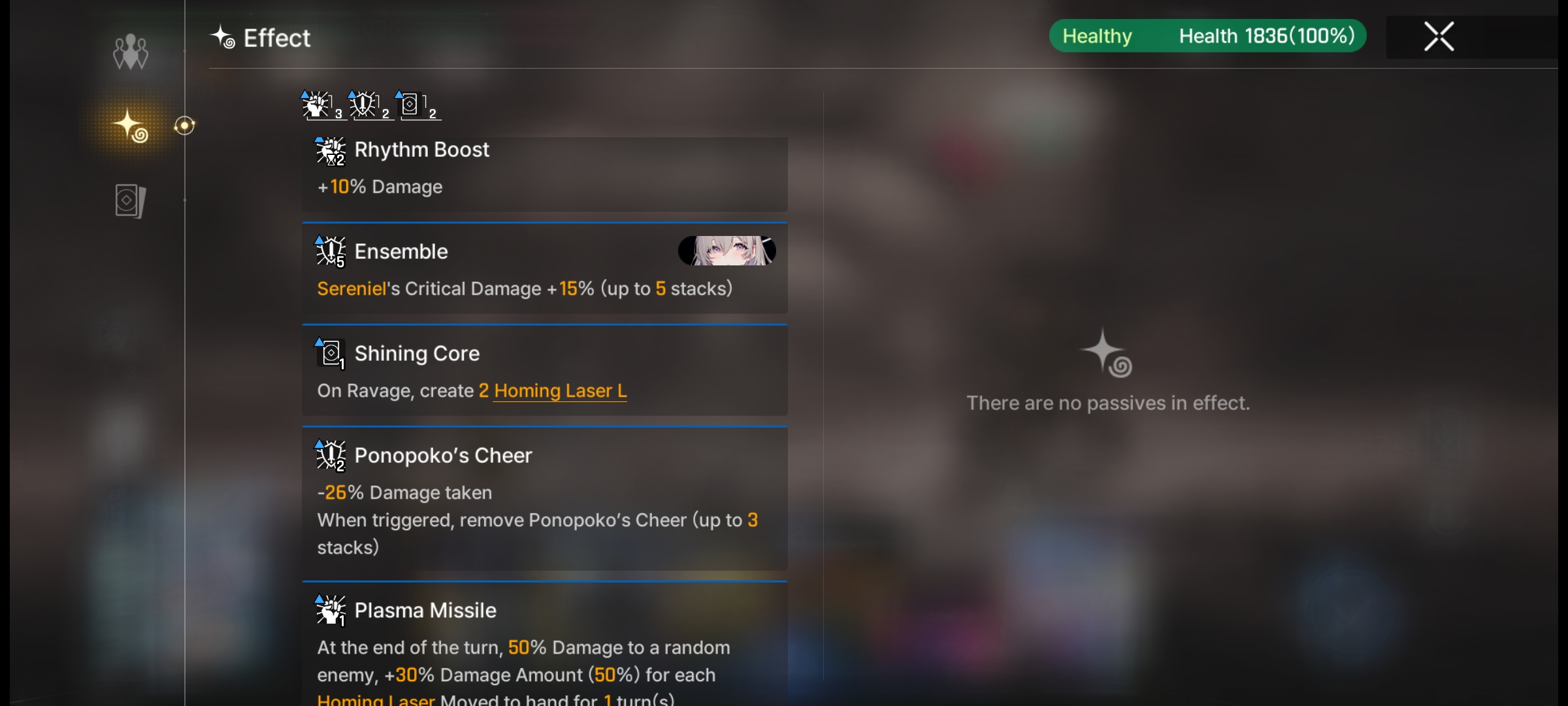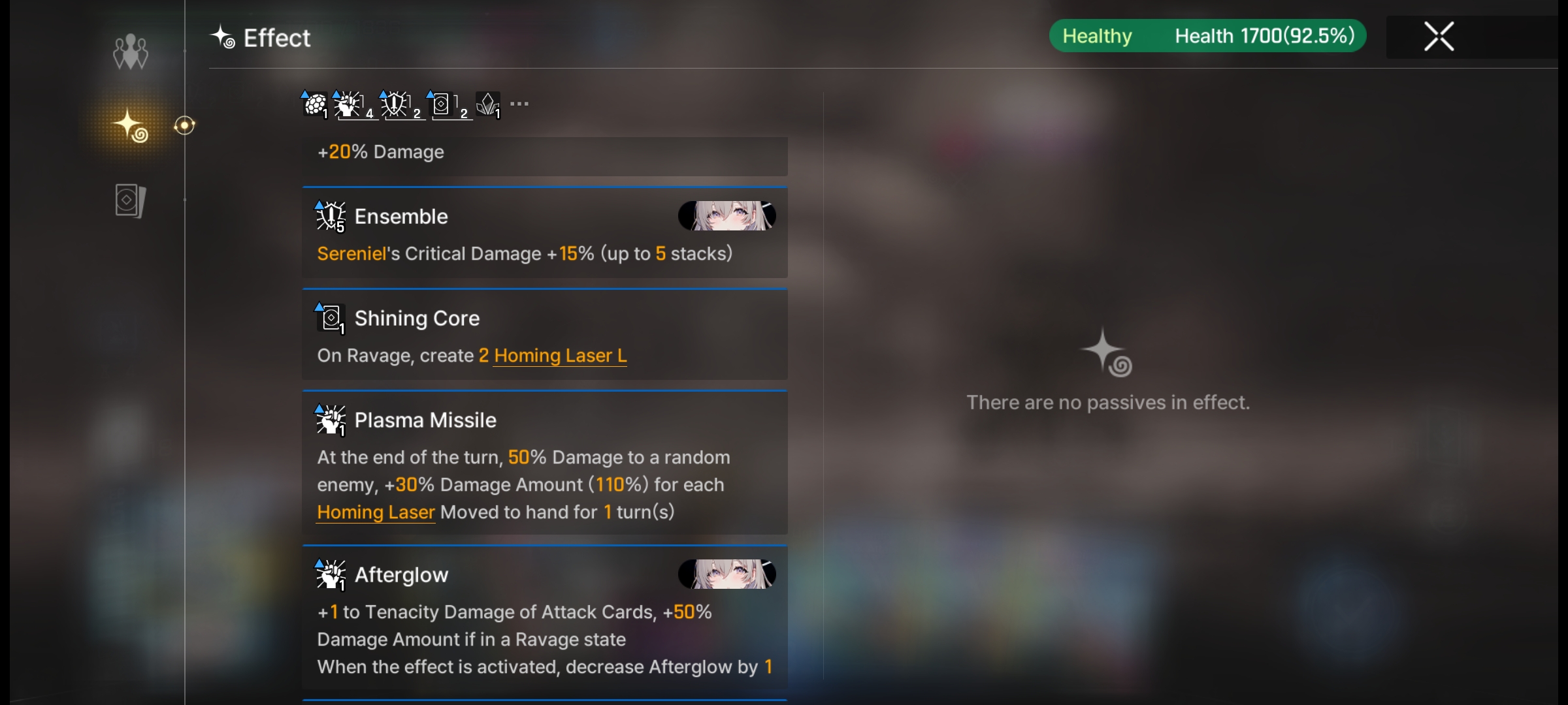 The following picture show sereniel e4 not working with this save in particular. The other save file seem to work just fine. I should get one stack of buff after I ravage this guy but nothing is given. Also the assesories also doesn't give effect too.
