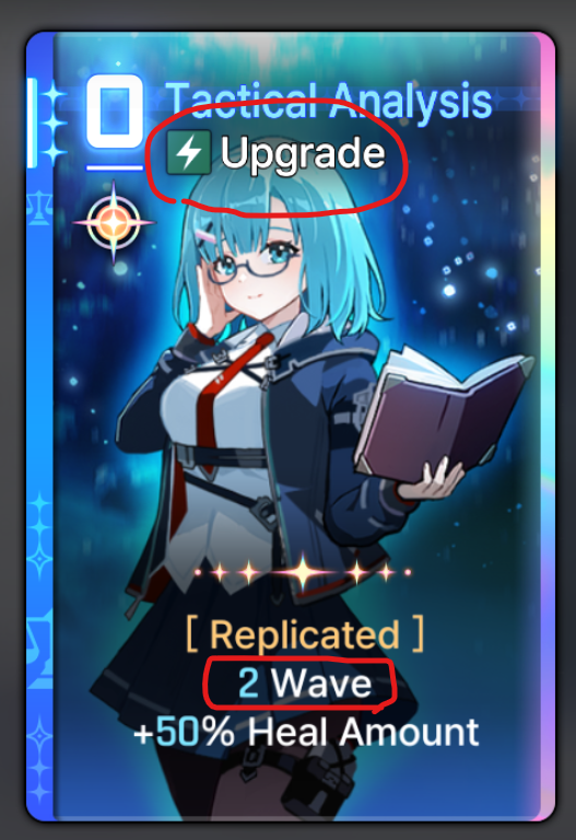 So that Mika upgrade card is very obvious to me that it will generated 2 Wave when used and +50% heal permanently.