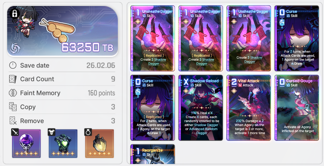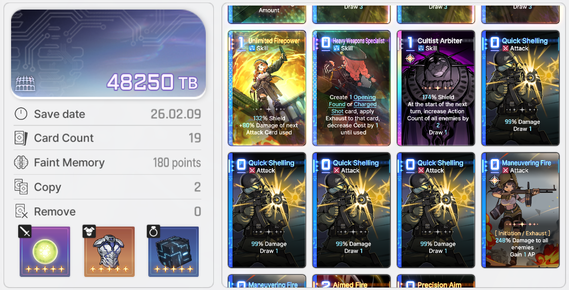 From what I’ve seen, I suspect the easiest way is to simply have a lot of cards, the more rare the better. Deleting cards seems to lead to smaller save data. Getting the 72000 one will probably require getting all your cards, leaving them in the deck, full gear slots, a few mods+God hammer, getting a few clones, and adding some legendary neutral cards. Even if deletions don’t directly reduce the save data size, spending faint memory on those instead of adding neutral cards definitely will.