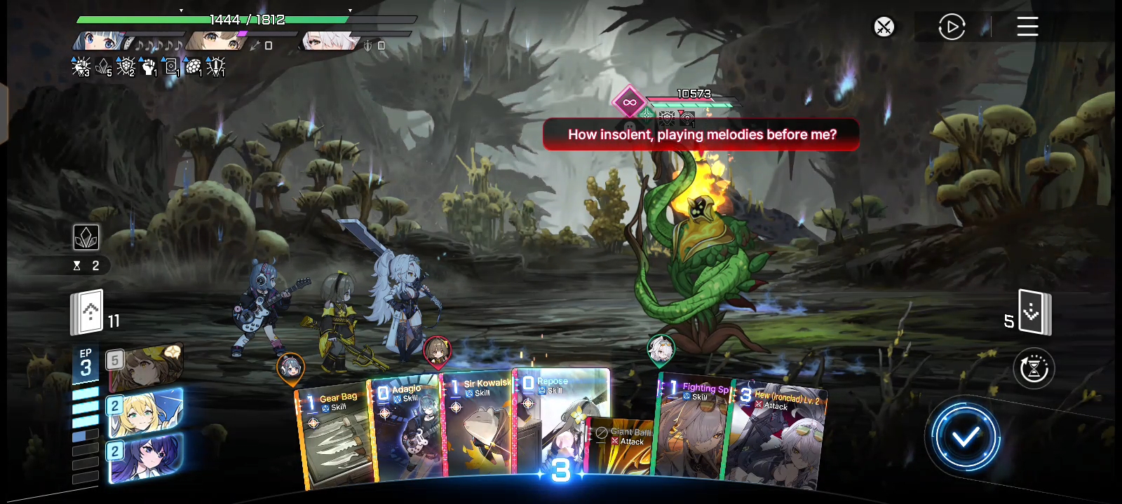 Find out that if you're facing against the Vine Lord with Nia on your team, on the second turn, the Vine Lord will have this speech bubble.