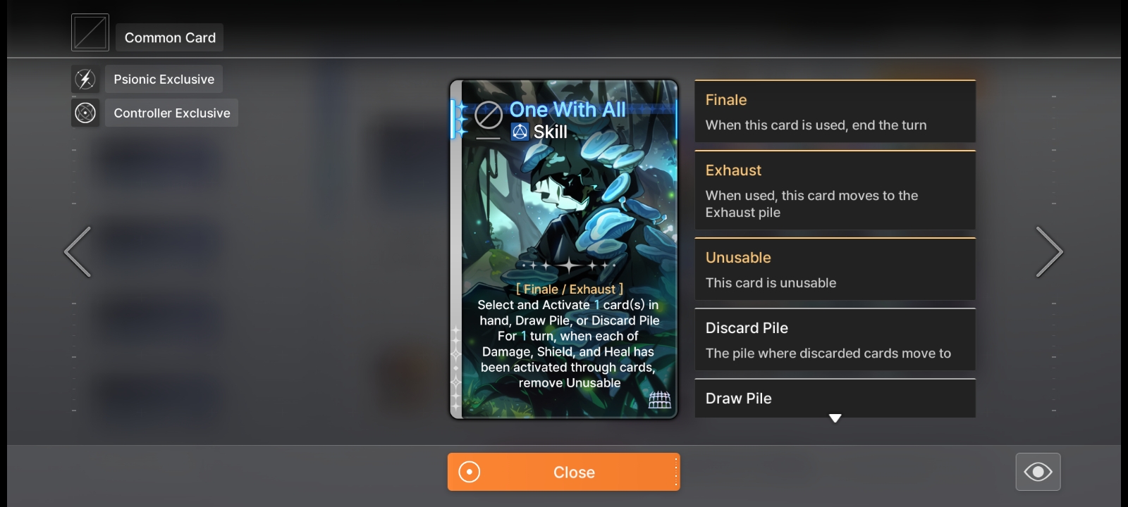 !!One With All!!: Altho i really like this card, its important to notice that It ends your turn ( hence Its [Finale] effects ) but you get a free activation on any card on your deck, its restriction may seem harsh, but youll easily achieve'em with Tiphera ( Triangle gives barrier, and Circle/Square heals, youll do DMG anyways ), its an optional card, and you dont need It on your deck, but, once again, its a free cast, and thats also how youll cast her 9 cost Creation on Destruction, If you so deire ( For any reason ), for an optiomal deck, you'll wont take this card at all ( i have a good enough card cycle, so, I've decides to take It for the free Hew once per battle );
