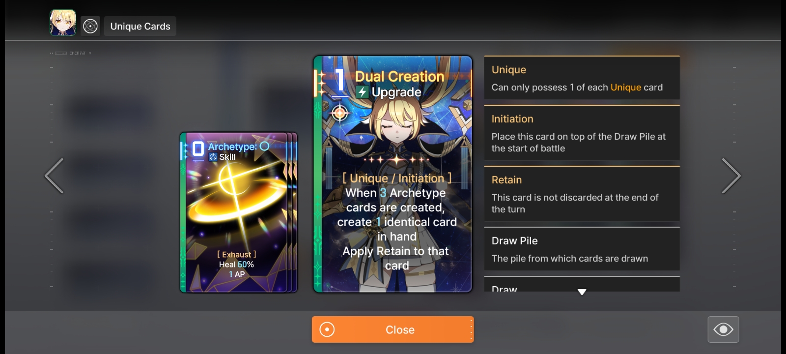 !!Dual Creation!!: This one isnt really needed, but good to have, if you dont get the upgrade epiphany that directly puts an archetype in your hand, remove it, as said before, you dont want archetypes flooding your draw or discard pile, well its worth its cost but isnt exactly worth a draw slot, thats why youre not taking the skill version;