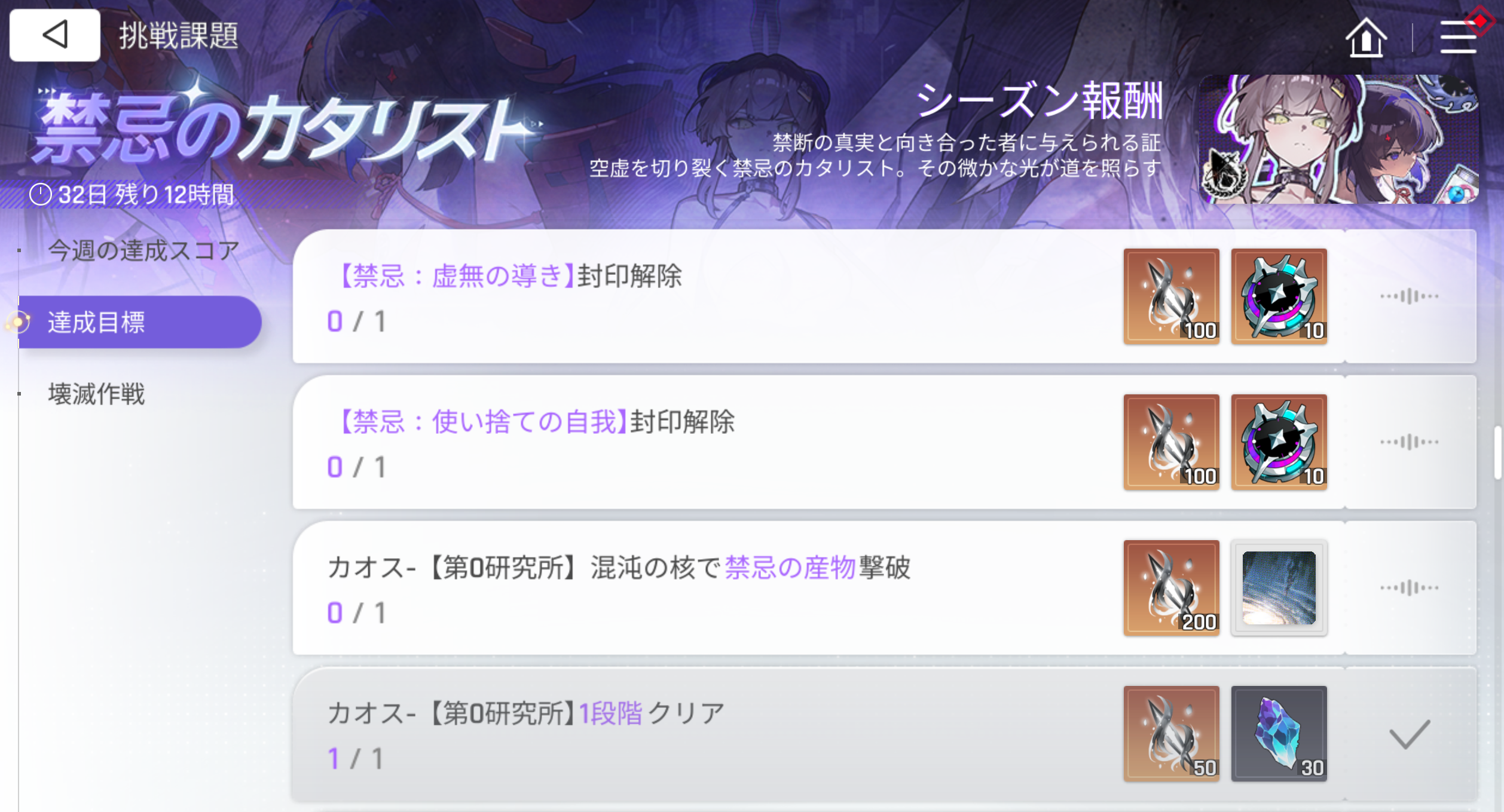 글상세雑談掲示板 イベントの達成目標について質問です S1761545656869812 2025-12-12 05:58 2025-12-12 14:58 (+09:00) view count 674 MYホームを見る 作成した投稿/コメントを表示 通報する シェアする 雑談というか、ご存知の方に教えていただきたいのですが…イベントの中にある達成目標の「【禁忌:虚無の導き】封印解除」はどうしたら達成になるんでしょうか?これ(添付画像)ではだめなのでしょうか…?また、同じく達成目標の「混沌の核で禁忌の産物撃破」は混沌の核(3エリアくらいしかないマップで合ってますか?)で抑圧された使用人と同じ見た目の敵を1回倒すだけではだめなのでしょうか?3回倒して探査度のボス欄で解放するという意味ですか? コメント 0 alarm 通知を解除しました。 新しい順 新しい順 登録順 おすすめ順 コメントを入力するには ログイン してください。 確認 キャンセル 確認