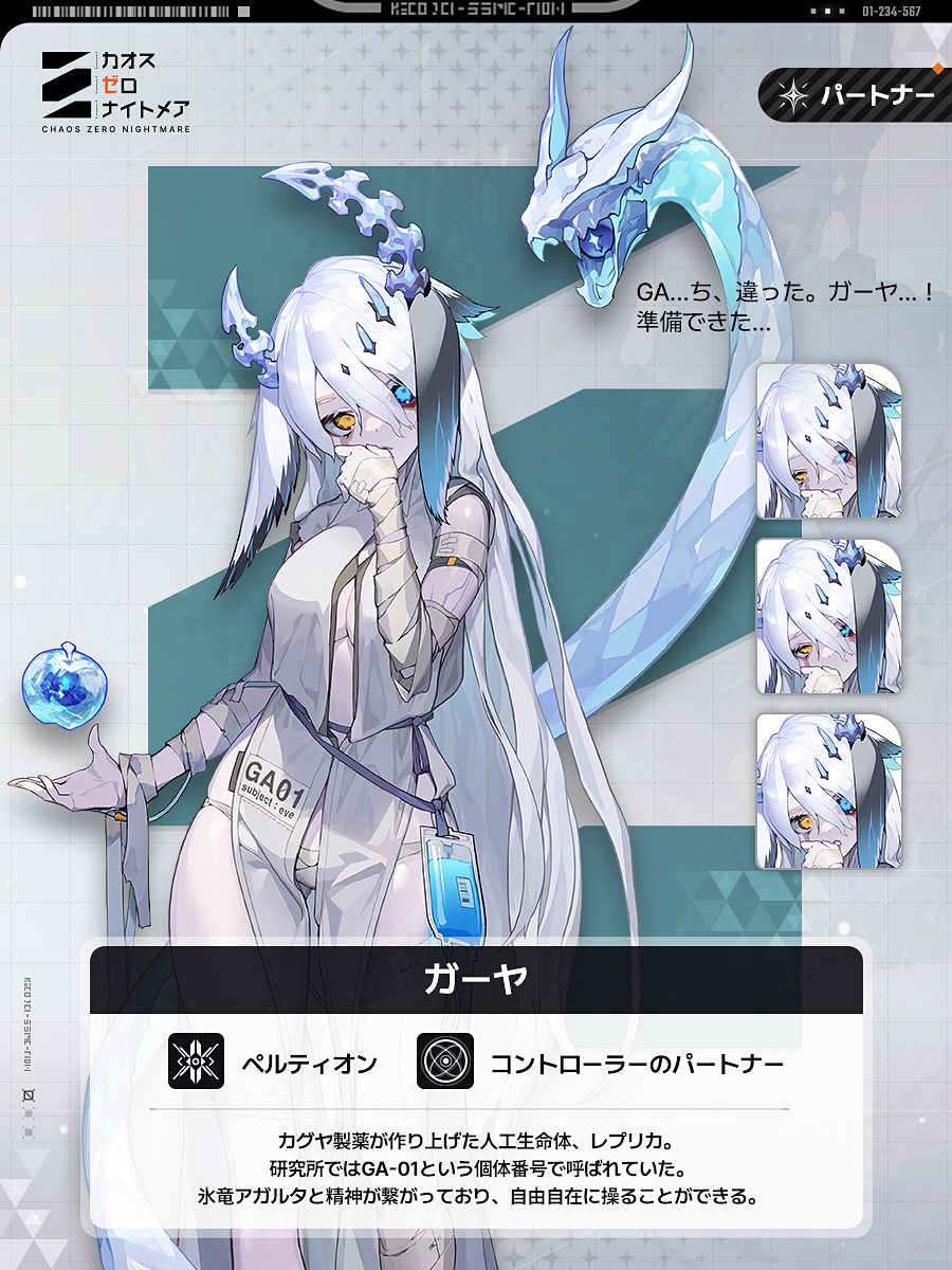 글상세要員情報 ◤カグヤ製薬が作り上げた人工生命体「ガーヤ」◢ [1] OFFICIAL 『カオゼロ』運営チーム 2026-01-14 02:30 2026-01-14 11:30 (+09:00) view count 962 MYホームを見る 作成した投稿/コメントを表示 シェアする ペルティオンのレプリカ、個体番号[GA-01]鋭く自己防衛的な性格を隠さない一方で、ナージャのことだけは誰よりも真っ先に気にかけるコントローラーのパートナー「ガーヤ」をご紹介! コメント 1 alarm 通知を解除しました。 新しい順 新しい順 登録順 おすすめ順 コメントを入力するには ログイン してください。 S1715108330110911 2026-01-18 22:33 2026-01-19 07:33 (+09:00) MYホームを見る 作成した投稿/コメントを表示 通報 服がとんでもない娘 確認 キャンセル 確認