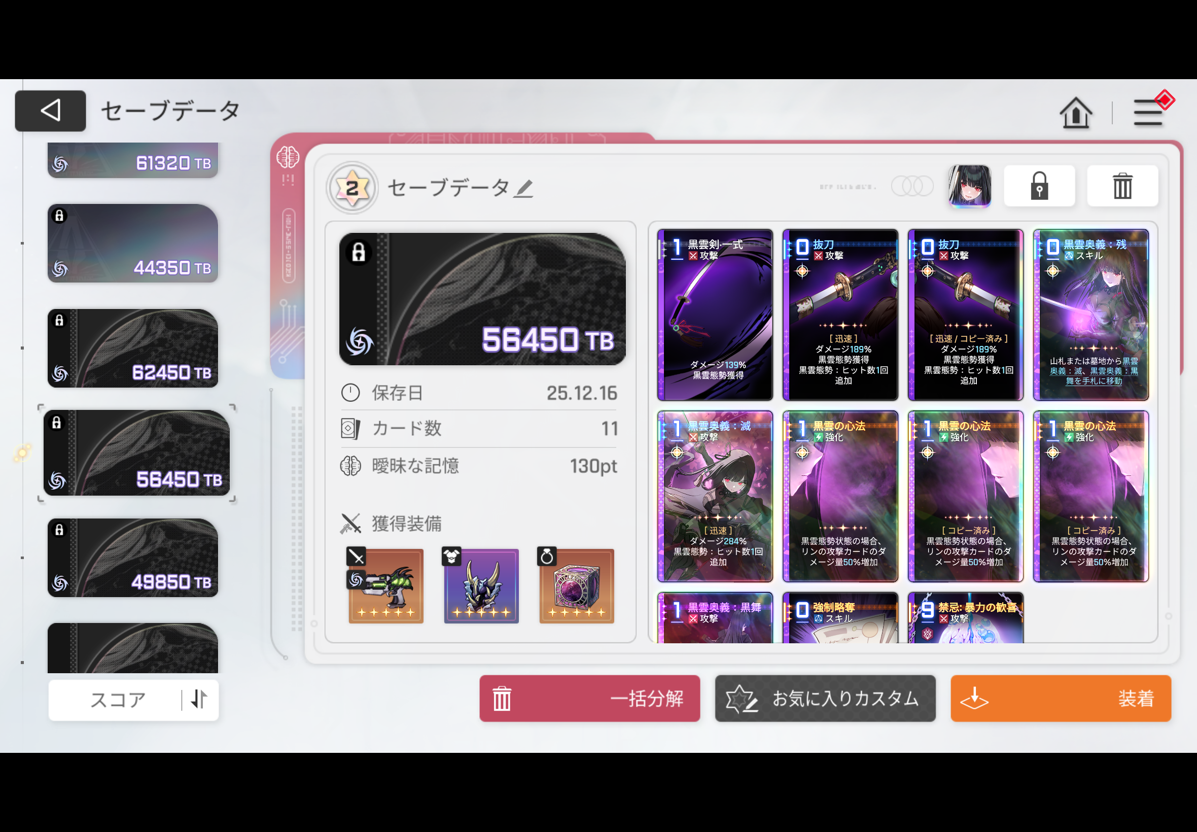 完全完璧完成度の高いセーブデータ(装備完璧・4枚積み・ヒラメキ完璧