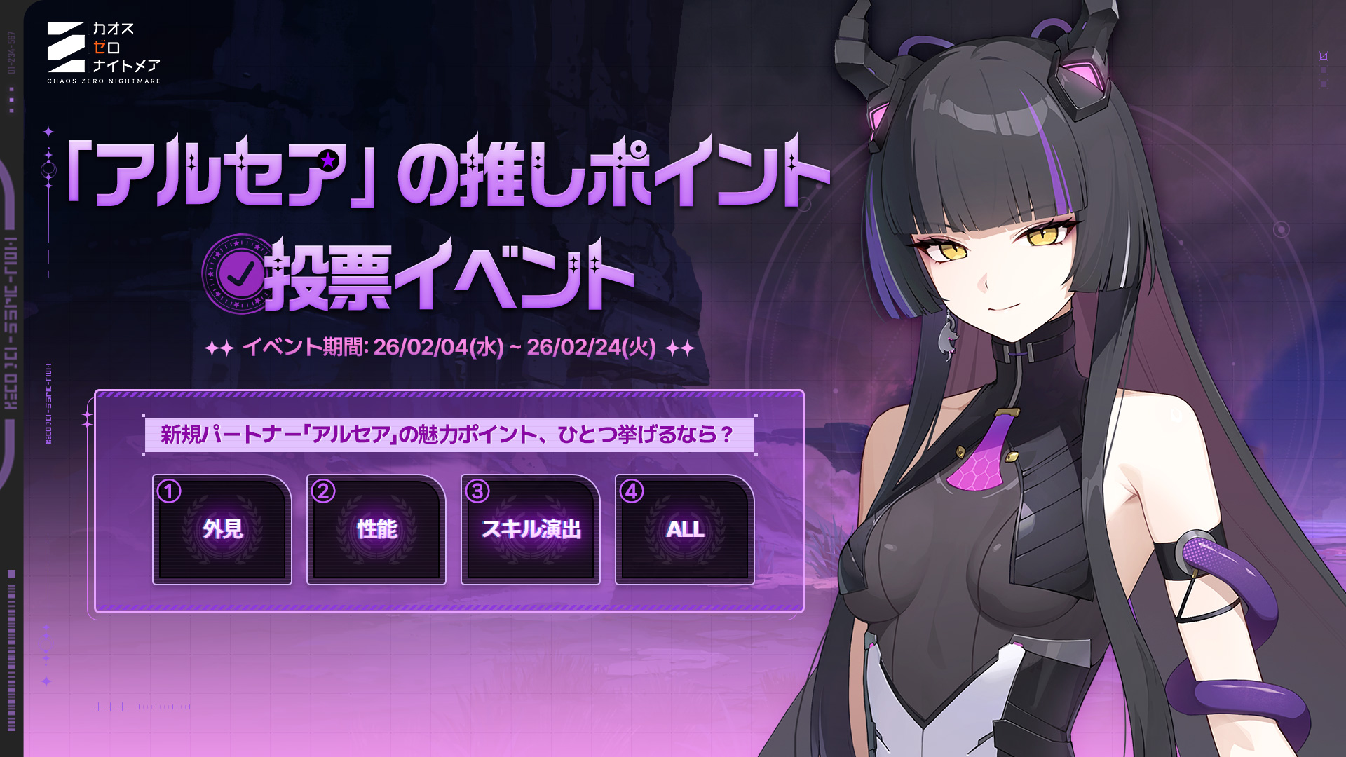 ✅イベント内容:多彩な魅力を持つアルセアの 推しポイントに投票してください!