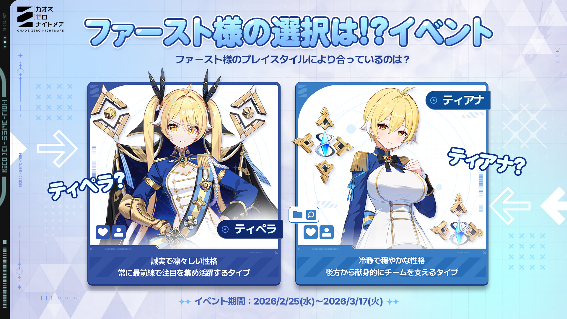 - ティペラとティアナの中から一人を選び、【UID / ティペラ or ティアナ】の形式で、コメントに書いて参加完了!