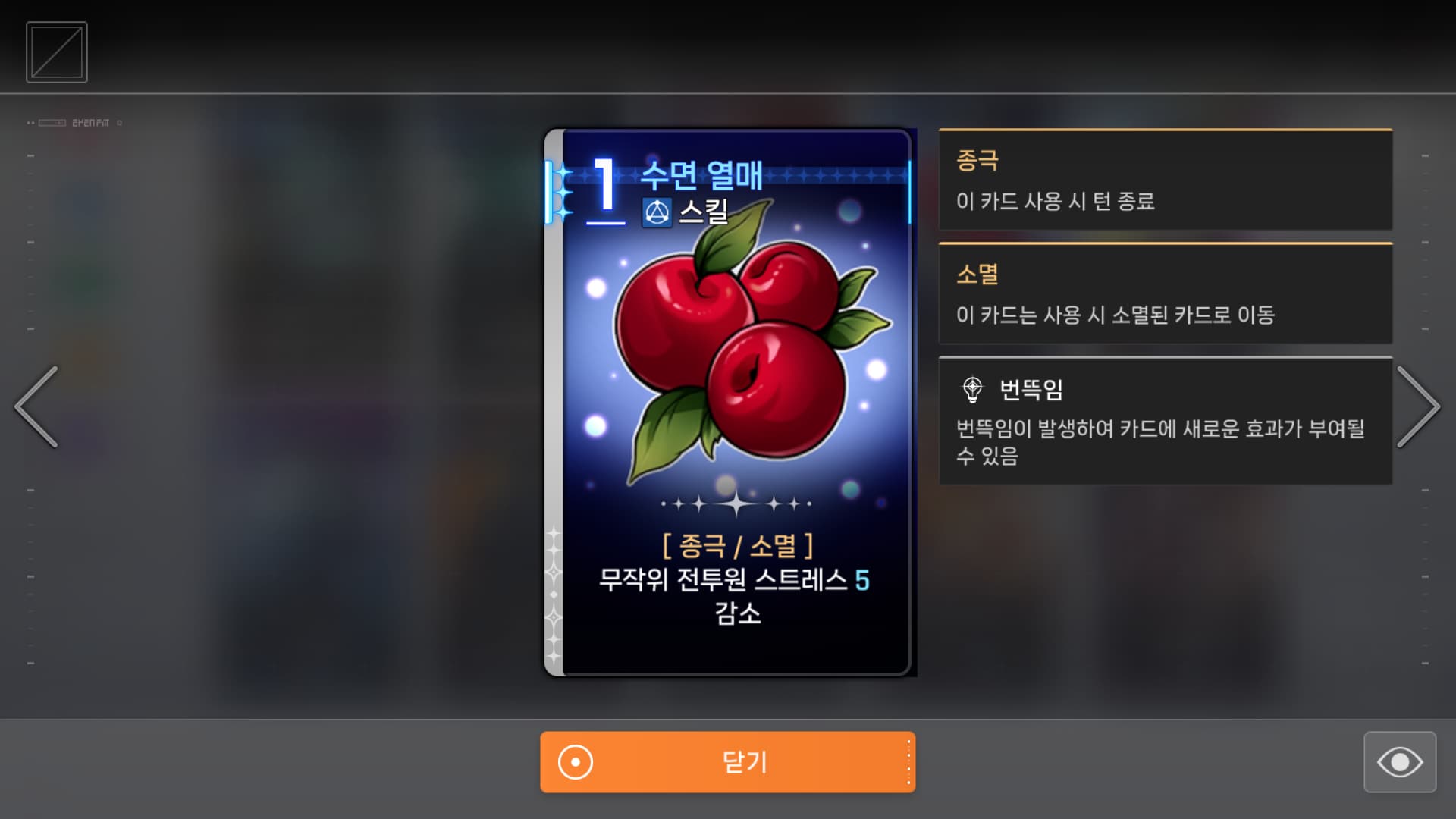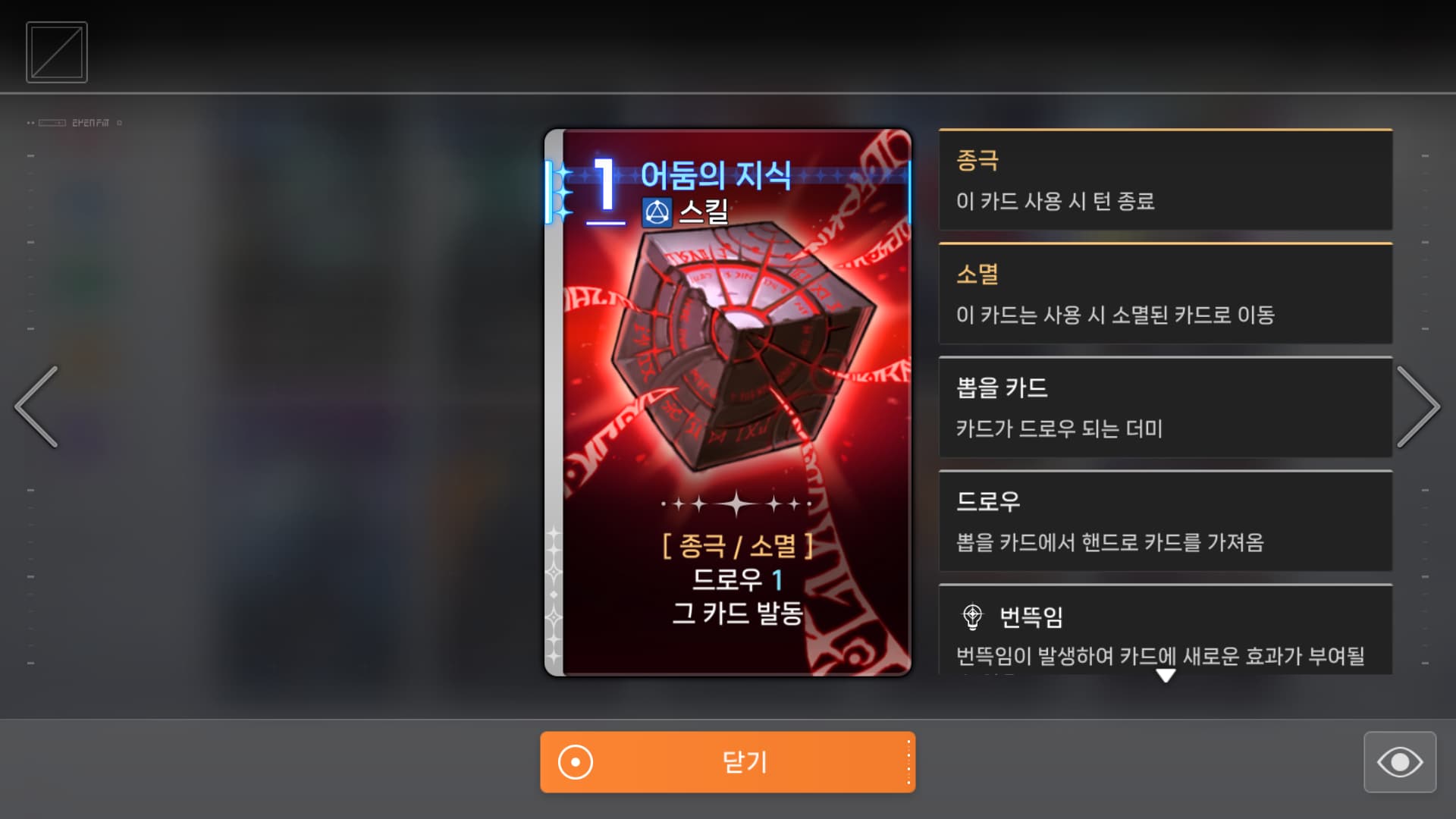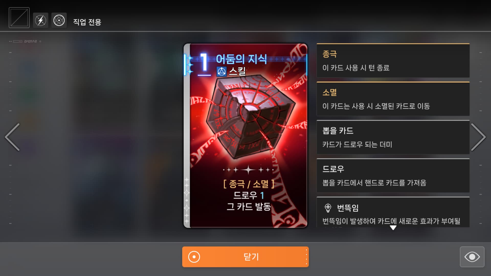 글상세오류 제보 카드 도감 오류 127921427 2025-11-07 07:06 2025-11-07 16:06 (+09:00) view count 478 MY홈 보기 작성글 보기 신고하기 공유하기 왼쪽 위에 보면 사용 가능한 직업이 나오는데좌우의 <> 버튼으로 이전, 다음 카드로 넘어가다가모든 직업이 사용한 카드가 나오면 다시 돌아가도 이후 모든 직업 마크가 사라집니다 댓글 0 alarm 알림이 해제되었습니다. 최신순 최신순 등록순 추천순 댓글을 입력하려면 로그인 해주세요. 확인 취소 확인