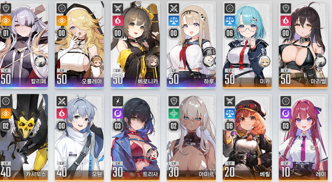 조합은 카오스마다 속성을 보고 적절하게 맞추는게 제일 좋습니다 딜뻥도 있고 흐트러짐 코스트 수급으로 딜 포텐 자체가 올라가니까요. 범용덱을 짜고 싶으시다면 6돌하신 베릴을 적극 활용하시는거 추천드립니다 3돌 5돌에 있는 능력치 강화가 준내 쌥니다