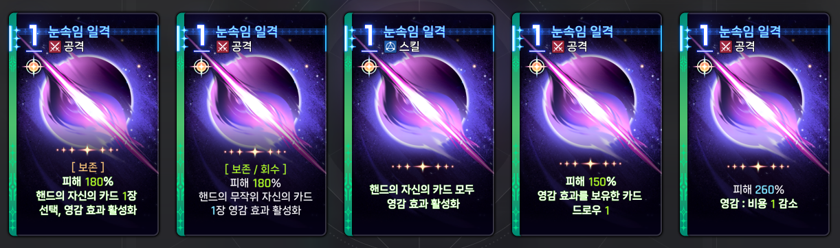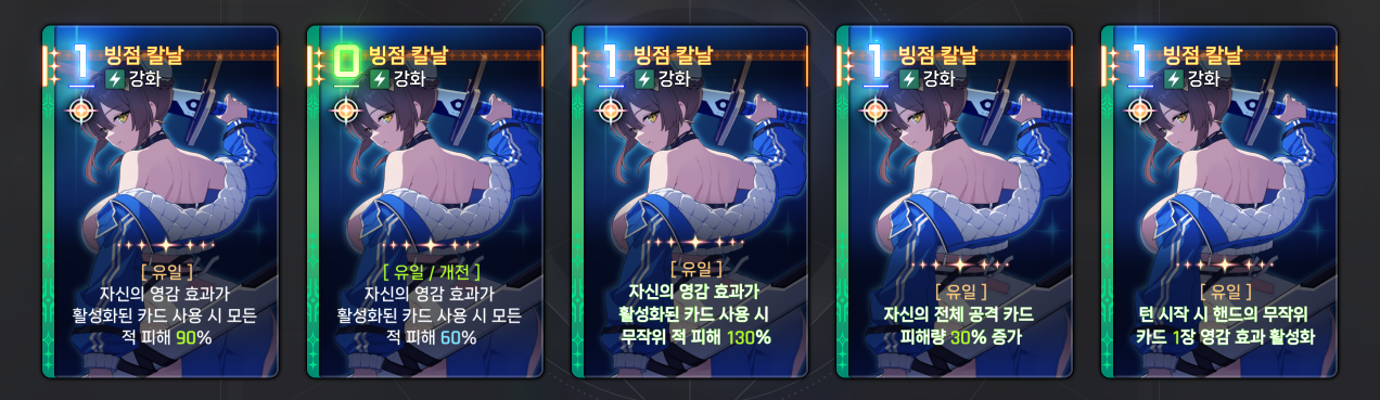강화 카드 유일 떼고!!!! 번뜩임 하나를