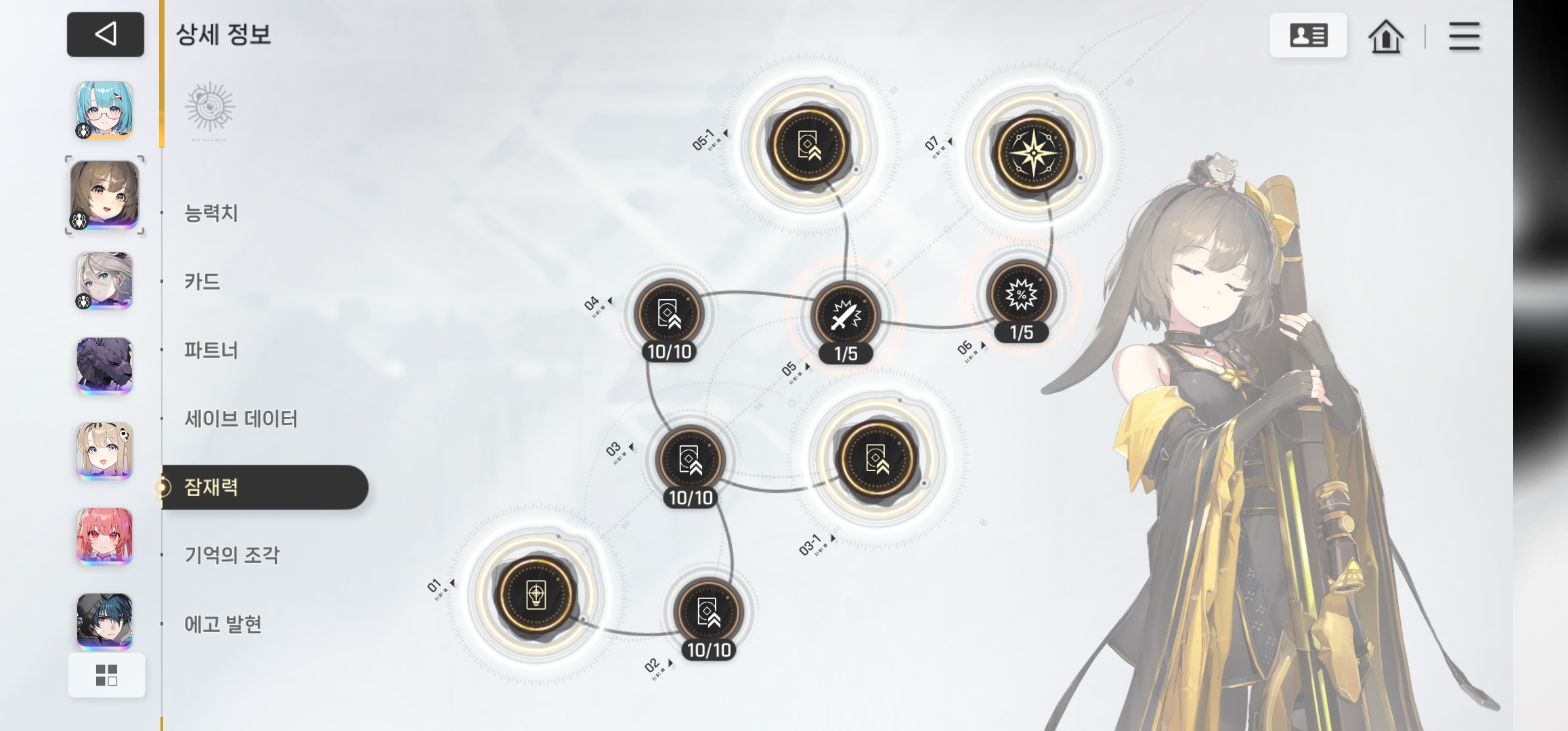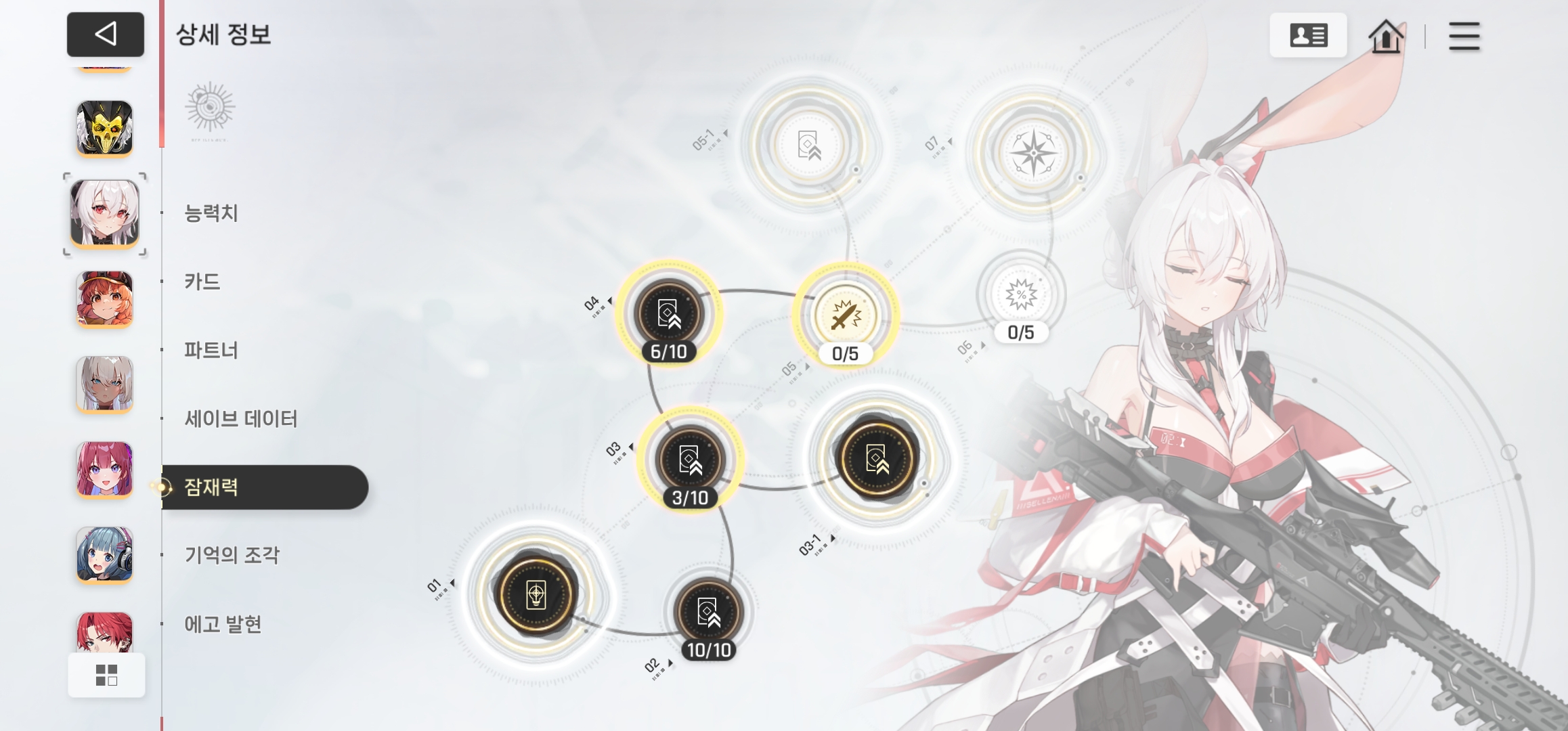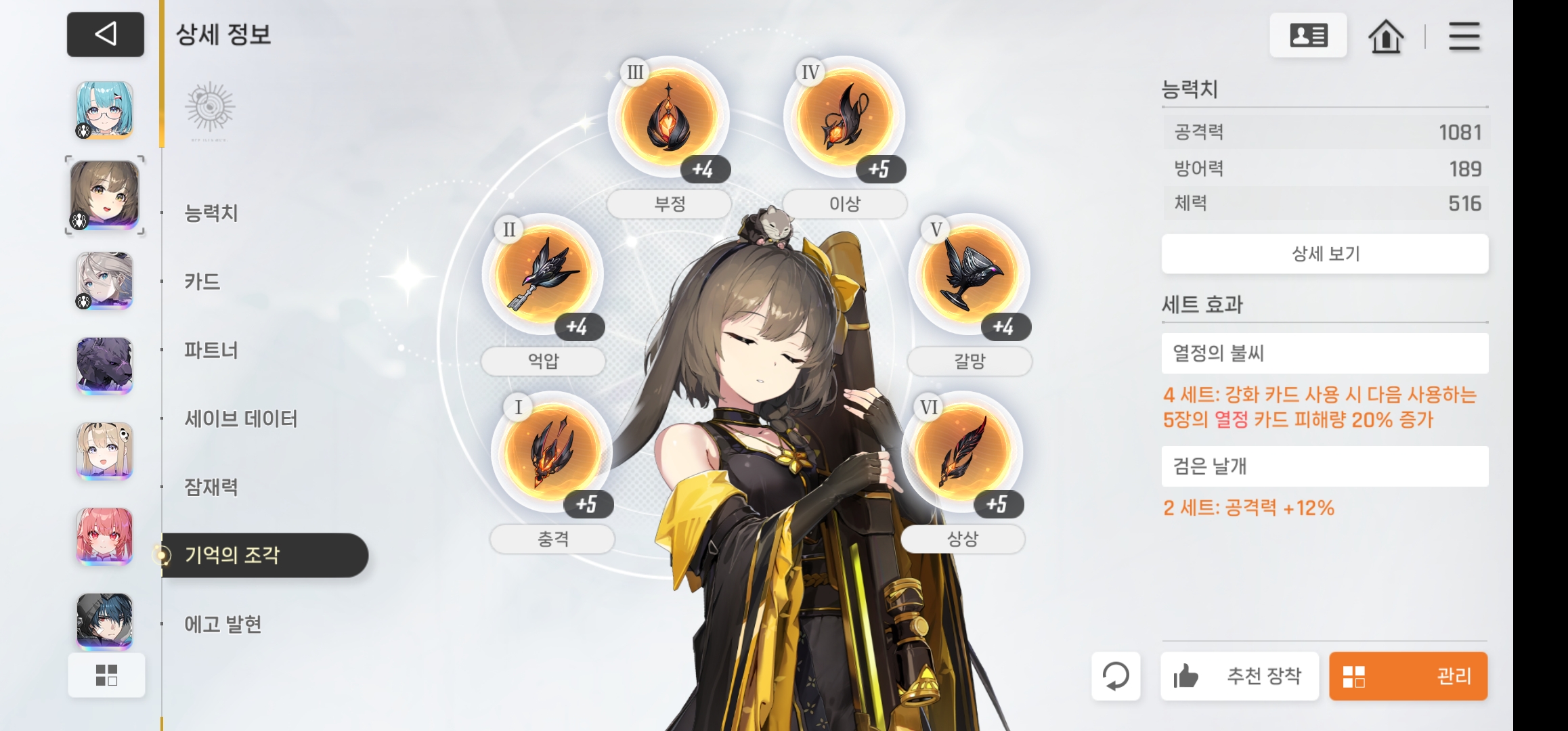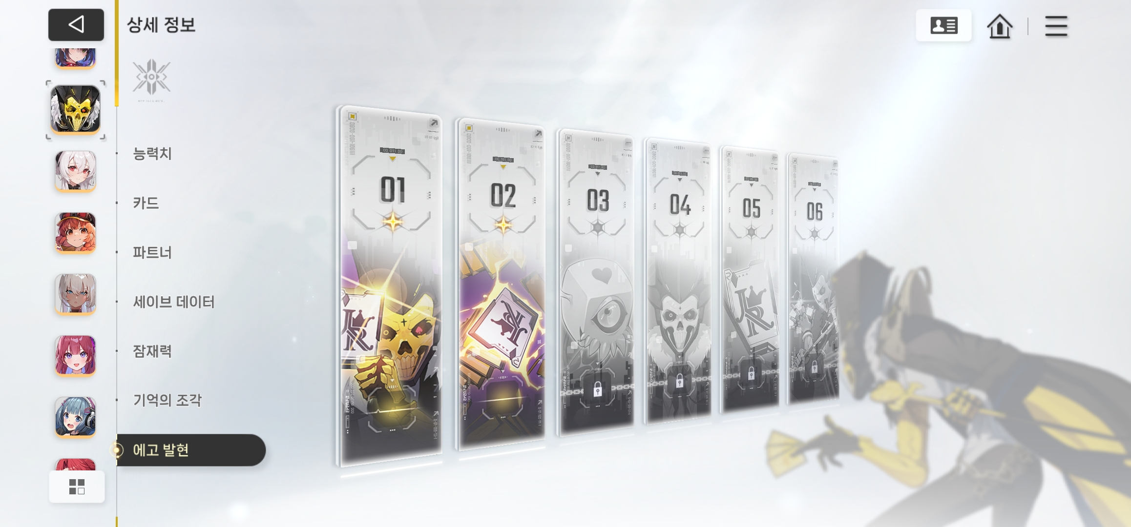 스펙은 아래 스크린샷 참고해주세요 드로우에 모든걸 바친덱입니다 맞고 다시 드로우로 피채우는 덱입니다(실드도 찹니다 아이템효과) 주도로 코스트가 높은(업데이트 이후로 금기 쓰기 편해졌으니 해보시는걸 추천 다른요원 주도는 안되니 한케릭에 몰빵하시면 됩니다) 표식으로 딜 mvp 엄청 꾸준히 딜 넣는게 아주 좋은 케릭이였습니다0돌이라 슬프네요 마리벨의 기억의 조각을 그대로 줬습니다 방어력이 체력도 올려주기 때문에 댓글 보고 파트너 현재 상황올릴게요 패가 안좋으면 질수 있으니 여러번 도전하시길 한번만 깨면 되니까요^^