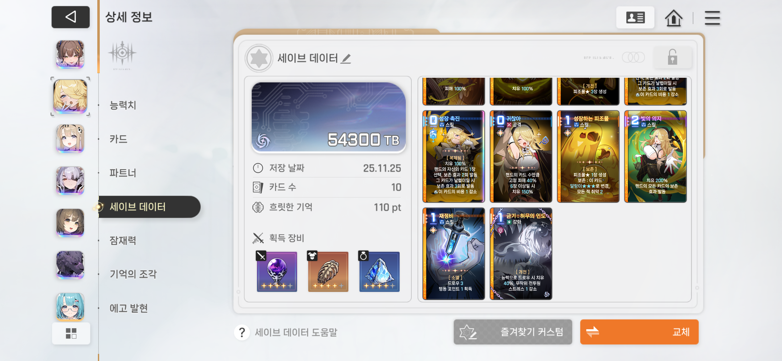 글상세Q&A 오를레아는 어떻게 써야할까요 [3] STOVE167392496836711 2025-11-25 03:03 2025-11-25 12:03 (+09:00) view count 195 MY홈 보기 작성글 보기 신고하기 공유하기 어떻게 써야할지 감이 안와서일단 힐이랑 딜뻥으로 카드작을 해봤습니다기본카드는 뭔짓을 해도 다시 살아나더군요ㅜ피조물 스킬에 튼튼이를 넣었어야 했을까요? 댓글 3 alarm 알림이 해제되었습니다. 최신순 최신순 등록순 추천순 댓글을 입력하려면 로그인 해주세요. 스토리안봄 2025-11-25 04:39 2025-11-25 13:39 (+09:00) MY홈 보기 작성글 보기 신고하기 귀찮아는 피조물 생성마다 뎀증가하시면 날렵이보다 성장빠르고성장촉진은 취향대로성장하는피조물은 보존제외 취향 이거까지보존들고가면 핸드터집니다 STOVE167392496836711 작성자 2025-11-25 03:38 2025-11-25 12:38 (+09:00) MY홈 보기 작성글 보기 신고하기 그런 방법이 있었네요 감사합니다 ㅎㅎ 스토리안봄 2025-11-25 03:13 2025-11-25 12:13 (+09:00) MY홈 보기 작성글 보기 신고하기 저같은경우는 주도스킬 사용하는 악세끼고향로 강화번뜩임 3장방어구 3장까지 버리고 드로우하는거 끼고주도 켜진거 2장까지 두고 버리던가 안켜지거나 한개만켜지면 한장빼고 다 버리는식으로 굴립니다 확인 취소 확인