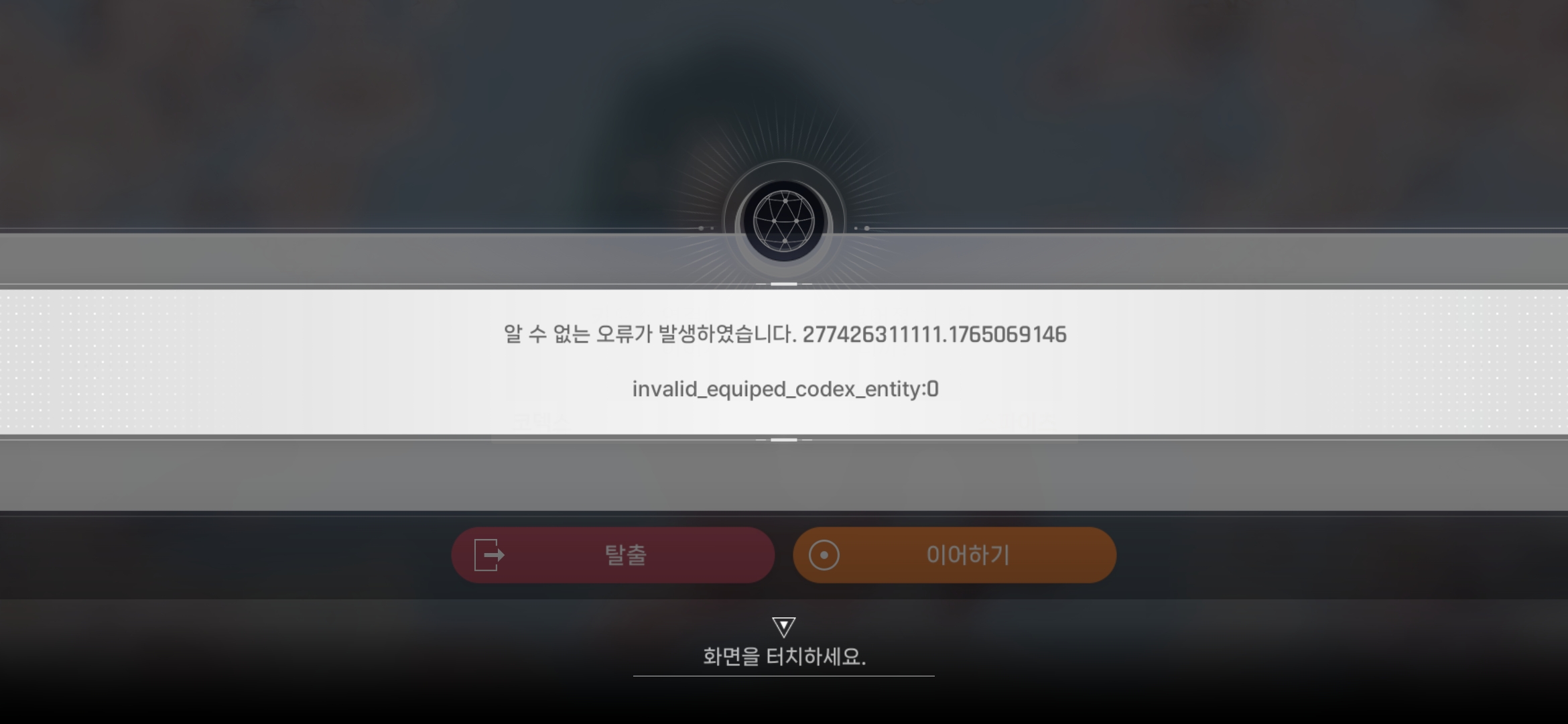 재접하면 카오스 진행 중으로 탈출 또는 이어하기 나옵니다.