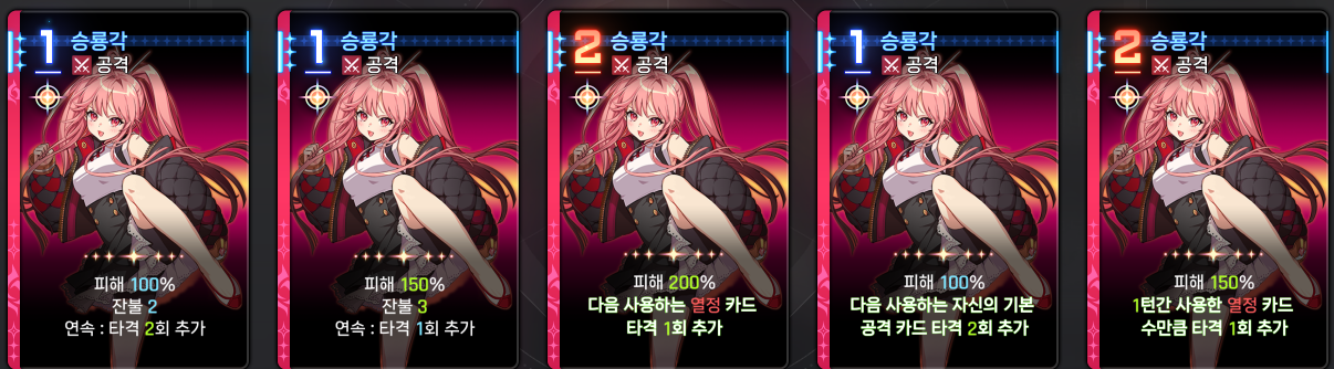 다른 모든 캐릭터 2번 잠재에 기본카드 딜량을 처 달아 놓으셨어요. 근데 기본카드 메이린, 린 빼고 기본카드 온전히 들고 가는분?