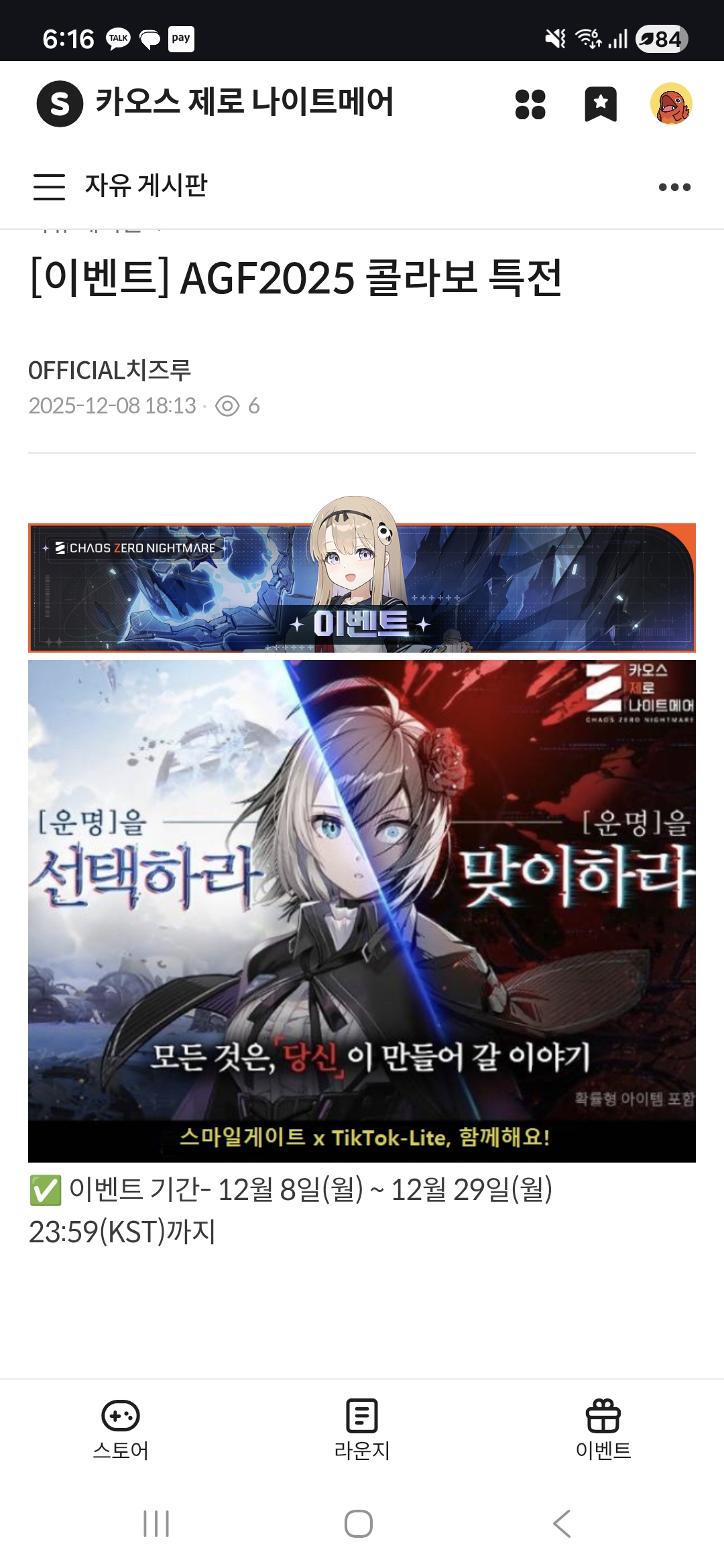 글상세자유 게시판 콜라보 이벤트 뭐시기 글 저거 쌀먹충임 [1] S1763057078153812 2025-12-08 09:15 2025-12-08 18:15 (+09:00) view count 224 MY홈 보기 작성글 보기 신고하기 공유하기 이런걸로 틱톡라이트 친추 쌀먹을 하려는 놈이있는데애초에 카제나는 그런거 할 여력이 없으니 낚이는 사람은 없길 바람대부분 바로 삭제됨아니 방금 지워졌는데 또있네이거 낚시니까 클릭 ㄴㄴㄴ 댓글 1 alarm 알림이 해제되었습니다. 최신순 최신순 등록순 추천순 댓글을 입력하려면 로그인 해주세요. s14832293123242 2025-12-17 14:39 2025-12-17 23:39 (+09:00) MY홈 보기 작성글 보기 신고하기 확인 취소 확인