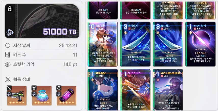 글상세오류 제보 유키 빙점칼날 적용이 안 됩니다 [1] 재롱아 2025-12-21 06:21 2025-12-21 15:21 (+09:00) view count 52 MY홈 보기 작성글 보기 신고하기 공유하기 유키 빙점칼날 자신의 전체 공격 카드 피해량 30퍼 증가 카오스 시뮬 대균열 다 적용 안 됩니다. 댓글 1 alarm 알림이 해제되었습니다. 최신순 최신순 등록순 추천순 댓글을 입력하려면 로그인 해주세요. 재롱아 작성자 2025-12-23 01:39 2025-12-23 10:39 (+09:00) MY홈 보기 작성글 보기 신고하기 빠른 수정 감사합니다. 칭찬해~ 빙점 칼날 적용됩니다~ 그래도 약한 건 안 비밀..ㅠㅠ도파민40 제압20*3 빙점30 130%로 가져올 수 있는 건 다 땡겨서 빙산갈라도 메이린 주먹질 2대 보다 약함..ㅠㅠ 확인 취소 확인