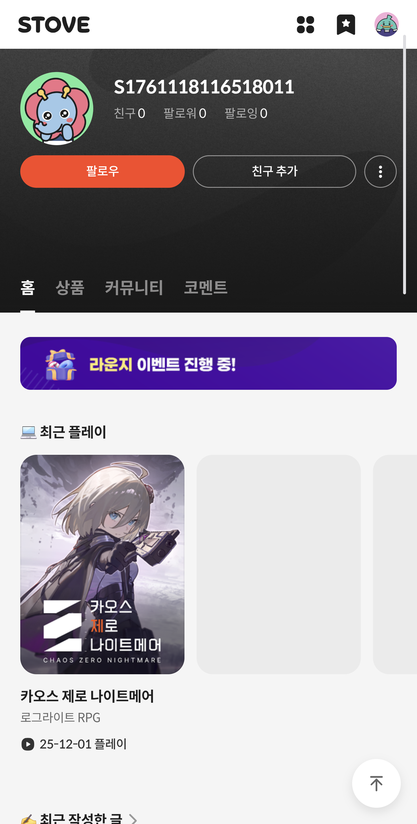 자유 게시판의 글 목록 STOVE84978_2 MY홈 보기 작성글 보기 작성 시간 2025-12-22 트리사 너프 전에 꿀 빨아라 [1] 2025-12-22 2025-12-22 00:32 인간야채 MY홈 보기 작성글 보기 작성 시간 2025-12-22 2월 카오스 피로도 개선해줄때까지 숨만 쉬어야겠다. [2] 2025-12-22 2025-12-22 00:11 STOVE169973117593510 MY홈 보기 작성글 보기 작성 시간 2025-12-21 무사고 0일차 [25] 2025-12-21 2025-12-21 23:18 S1763057078153812 MY홈 보기 작성글 보기 작성 시간 2025-12-21 +1 스토리개선 언급은 이게 끝임 [10] 2025-12-21 2025-12-21 21:12 STOVE273403 MY홈 보기 작성글 보기 작성 시간 2025-12-21 고인물형님분들 기억조각질문이요! [1] 2025-12-21 2025-12-21 17:29
