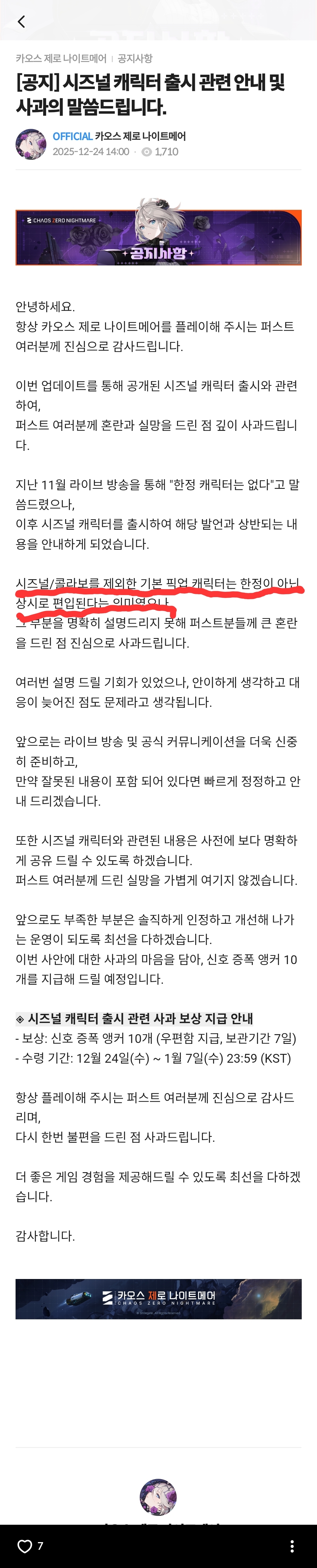 글상세제보/건의사항 한정캐릭없다며? [3] odogi 2025-12-24 06:16 2025-12-24 15:16 (+09:00) view count 181 MY홈 보기 작성글 보기 신고하기 공유하기 게임관련 책임자가 본인 입으로 한정없다고 말한걸 당당하게 거짓말이였다고 한건가요?이게 정상인가요?빨간줄 친 문장에 한정이란 단어가 안 들어갔으니 이전에 말했던건 거짓말이 아니라는건가요?무슨 말장난도 아니고 공부해서 취직해 일하는 분들일텐데 이용자들을 글도 못읽는 바보로 아는건지 모르겠네요.그래도 운영진들을 믿고 기다리면서 게임을 즐기는데 이번 사과문은 저를 바보 취급하는거 같아 매우 불쾌합니다. 댓글 3 alarm 알림이 해제되었습니다. 최신순 최신순 등록순 추천순 댓글을 입력하려면 로그인 해주세요. 오조다 2025-12-24 06:25 2025-12-24 15:25 (+09:00) MY홈 보기 작성글 보기 신고하기 전 이번에 시즈널이란 용어를 알게 되었습니다 ^^ 😭 S1720760665901112 2025-12-24 06:20 2025-12-24 15:20 (+09:00) MY홈 보기 작성글 보기 신고하기 유적학대혐오NTR겜으로 당연한 행동을 했을뿐 REALKKK 2025-12-24 06:18 2025-12-24 15:18 (+09:00) MY홈 보기 작성글 보기 신고하기 ㄹㅇㅋㅋ 확인 취소 확인