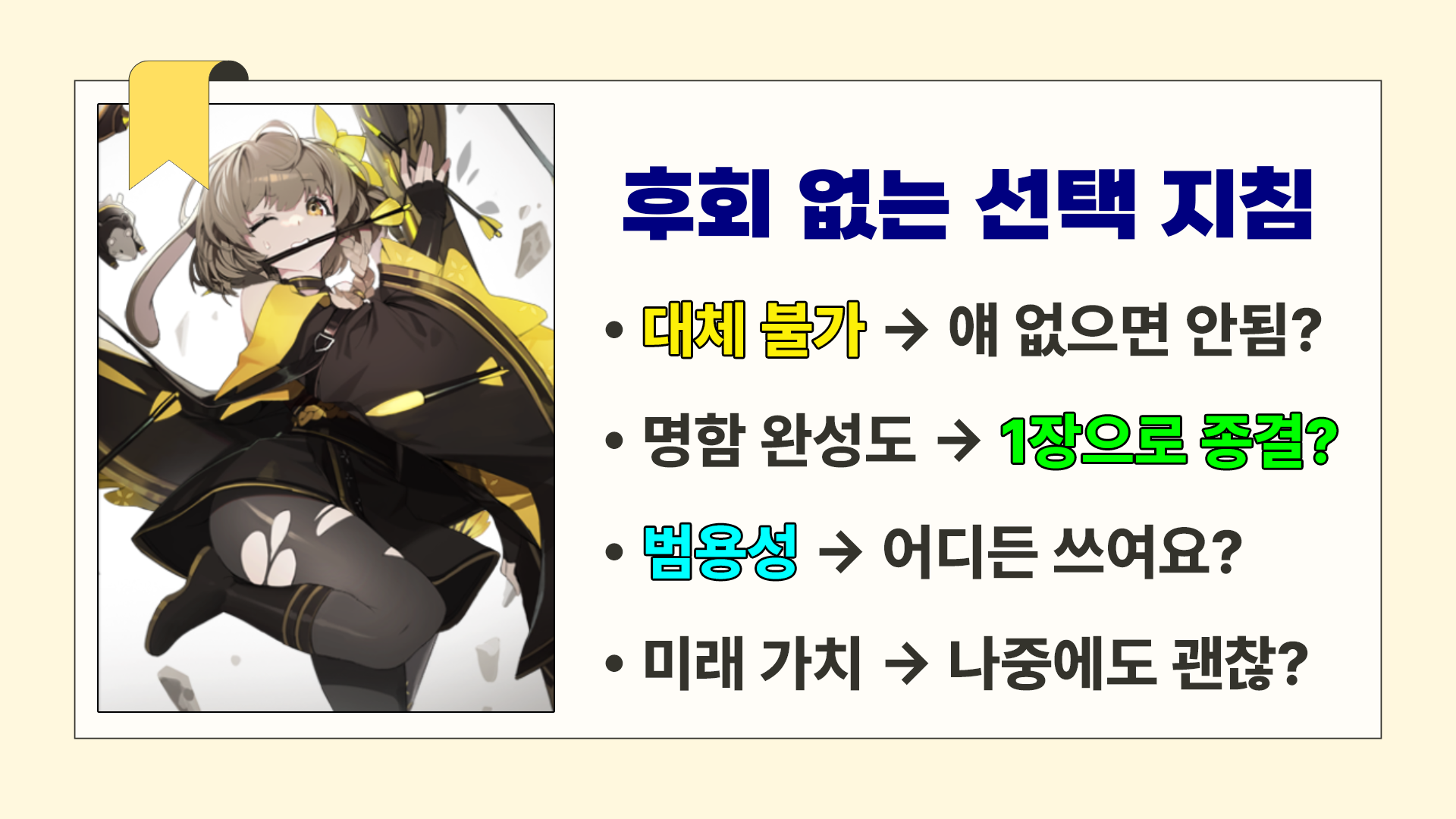이게 무슨 의미냐면 1장으로 가장 가치가 높은 캐릭을 가져와야한단 거죠.