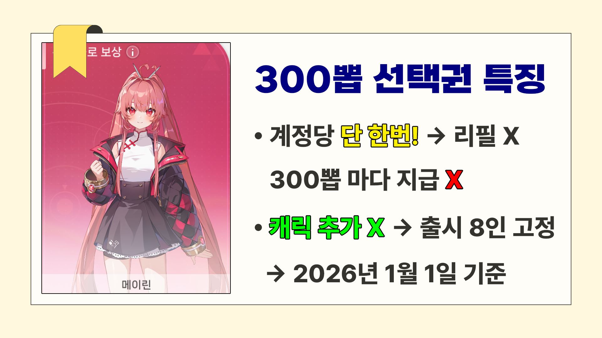 슬슬 많은 분들이 300뽑 스택 채우셨을 때라 준비해봤어요.