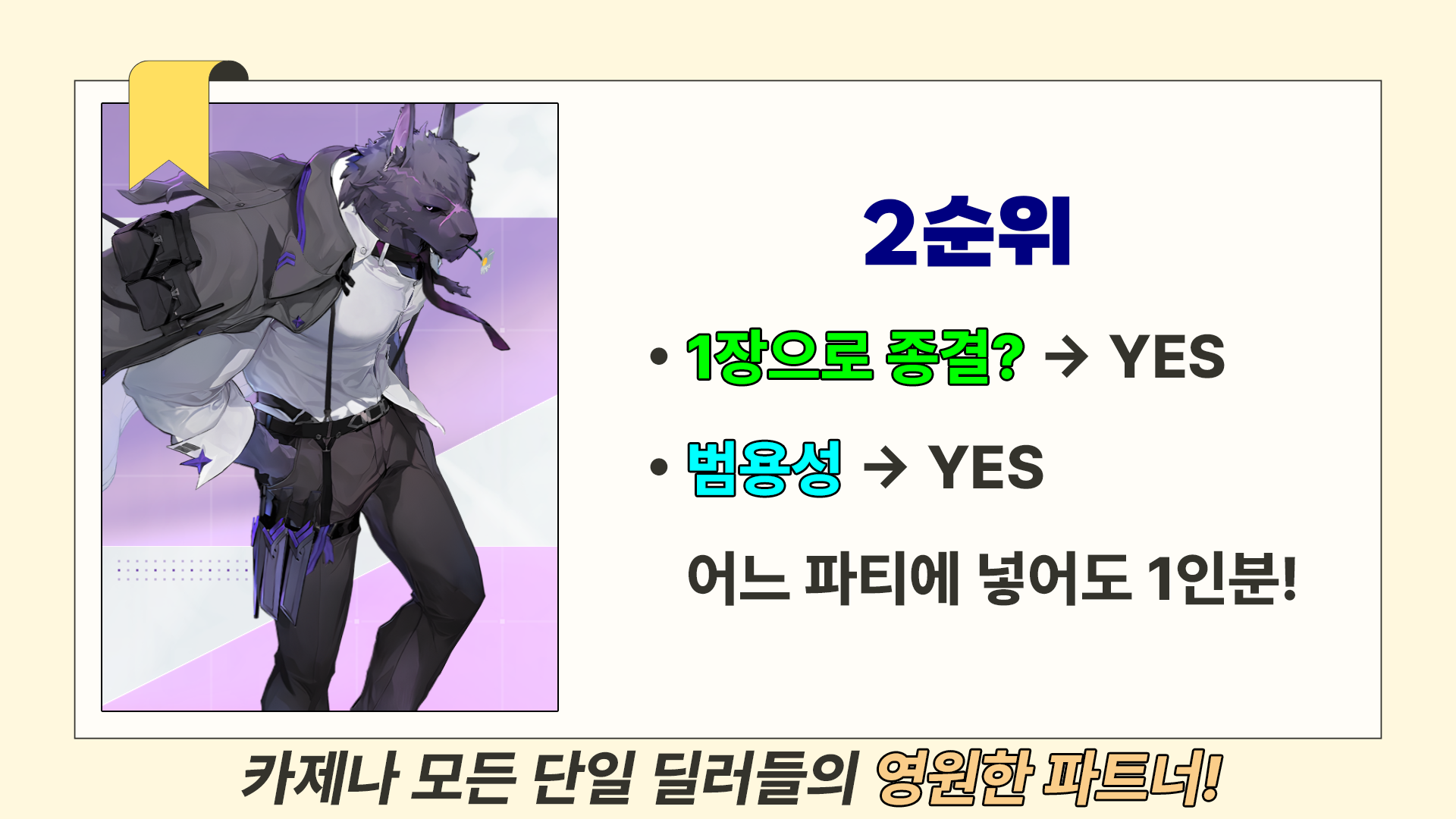 하지만 모든 단일 딜러와 잘 어울리기에 위에 2명을 갖추신 상태에서 현시점 고르시기엔 제일 무난하고 좋은 선택입니다.