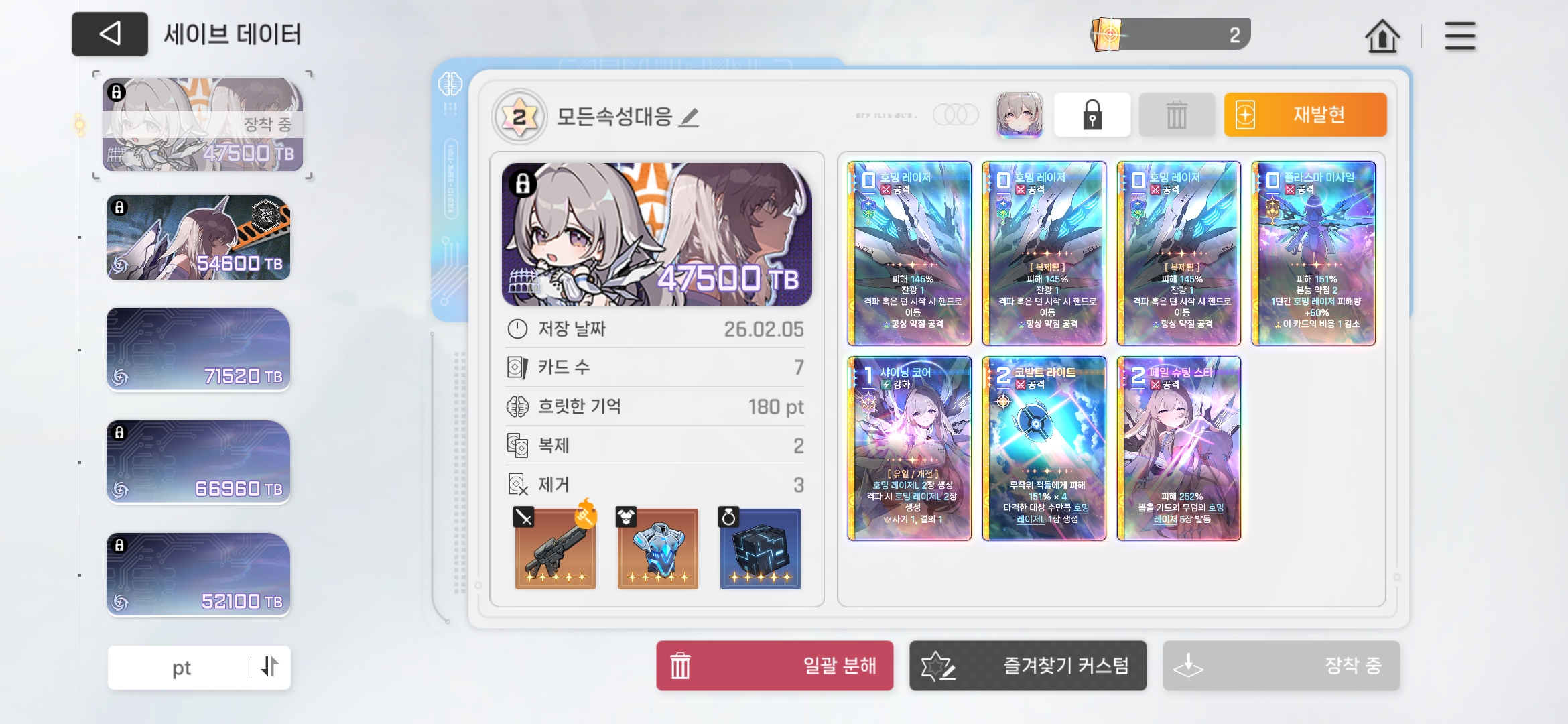 글상세공략 게시판 세레니엘 180pt 세팅 [3] 블루헤일 2026-02-05 13:30 2026-02-05 22:30 (+09:00) view count 390 MY홈 보기 작성글 보기 신고하기 공유하기 이번에 세이브 데이터 방식 변하고, 헷갈리실텐데 참고해주세요. 재련하는데도 pt 사용되는거 같습니다 댓글 3 alarm 알림이 해제되었습니다. 최신순 최신순 등록순 추천순 댓글을 입력하려면 로그인 해주세요. 179854731 2026-02-18 09:52 2026-02-18 18:52 (+09:00) MY홈 보기 작성글 보기 신고하기 세레 덱 최고 스토리안봄 2026-02-05 14:07 2026-02-05 23:07 (+09:00) MY홈 보기 작성글 보기 신고하기 금기마냥 최우선 저장 스토리안봄 2026-02-05 14:07 2026-02-05 23:07 (+09:00) MY홈 보기 작성글 보기 신고하기 재련 신재련 둘 다 옵션당 10포 확인 취소 확인