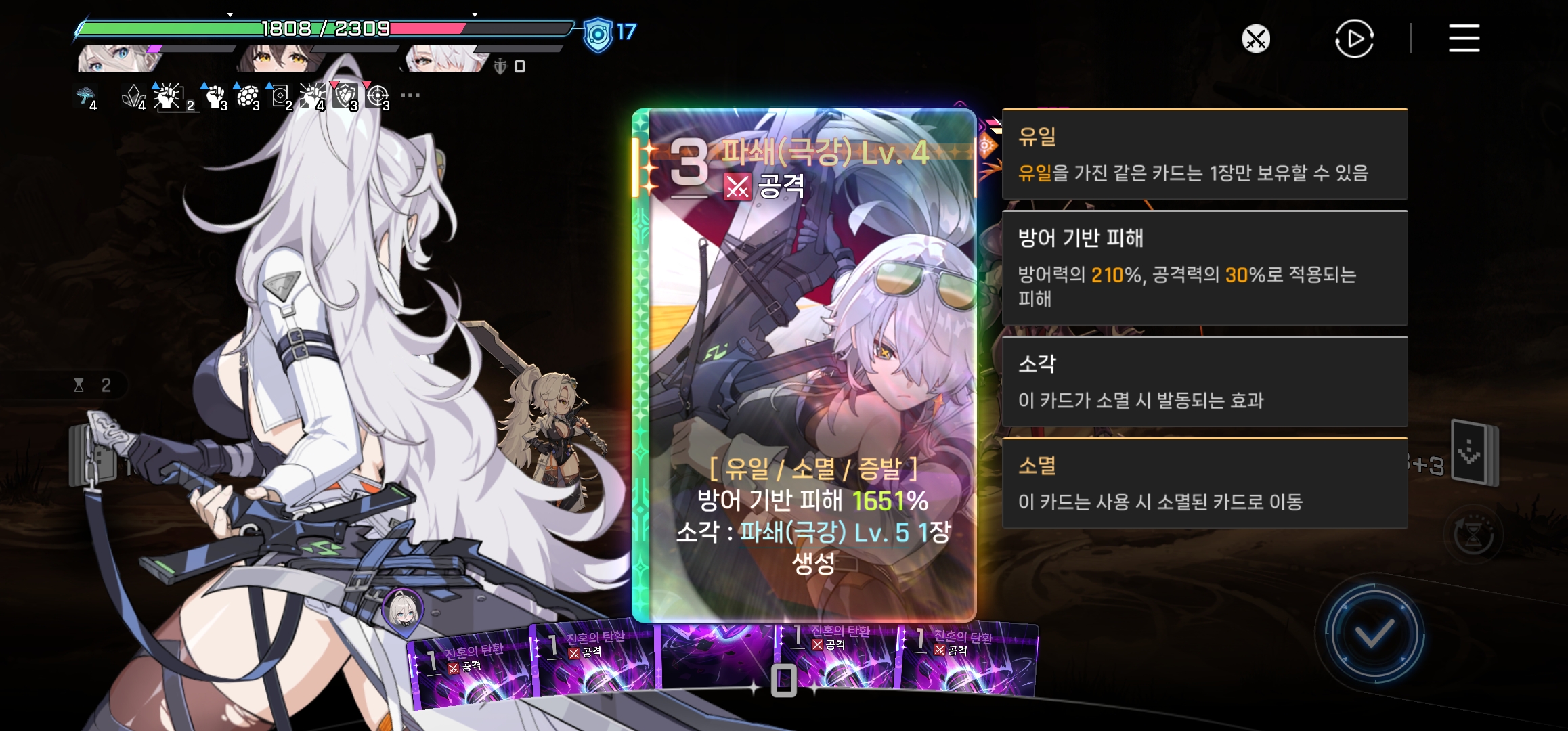 이런 소멸 피해량이면 소멸이 붙은 모든카드의 데미지가 붙어야하는데 피해량은 사용할시 데미지만 붙고 추가피해량 안붙어 나가네요