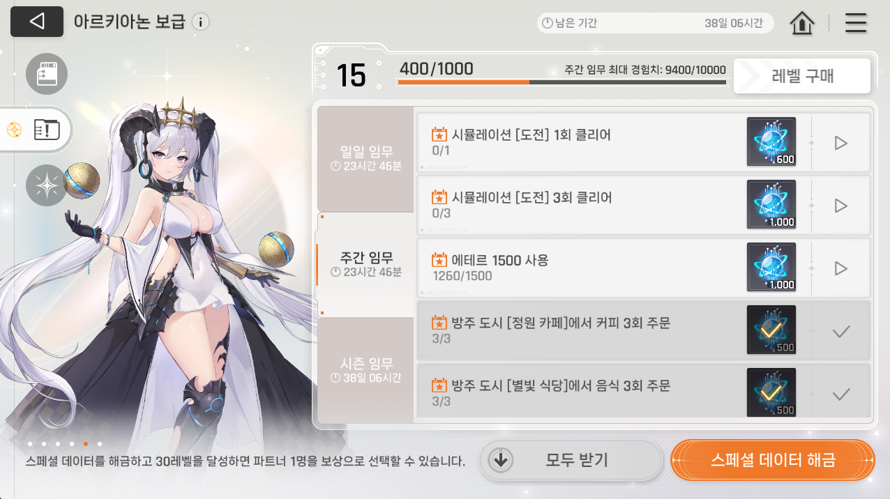 글상세제보/건의사항 보급 주간임무 개선 필요함 S1751268850939200 2026-02-28 18:25 2026-03-01 03:25 (+09:00) view count 44 MY홈 보기 작성글 보기 신고하기 공유하기 보급은 수요일에 리셋되는데1)수요일 전에 한 도전 클리어 적용 안됨그렇다고 클리어한 도전을 그 주에 다시 할수 있는것도 아니고2) 에테르 사용의 경우 수요일 업데이트 전 아침에 에테르 소비한 사람은 목.금.토.일 에테르 다 써도 임무 클리어가 안됨340x4=1360일요일 남은 시간동안 모아서 해도 하루 240에테르 회복이라 에테르 충전안하면 클리어 불가수목금토일 일일임무 800x5=4000주간임무 5600합 9600결국 보급 첫주차에는 에테르 충전 안하면 주간 제한을 못채움 댓글 0 alarm 알림이 해제되었습니다. 최신순 최신순 등록순 추천순 댓글을 입력하려면 로그인 해주세요. 확인 취소 확인