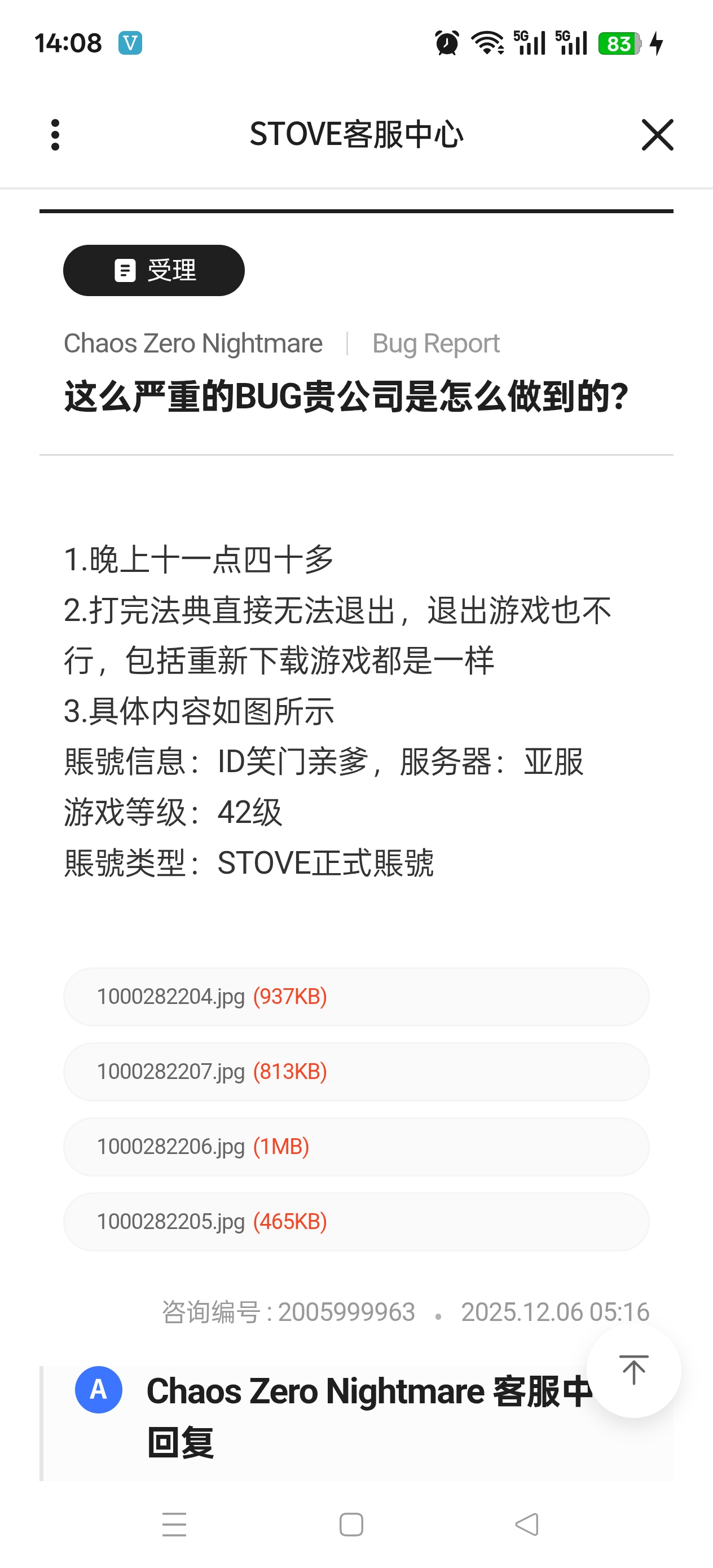 这辈子玩了二十几年游戏,第一次遇到一个游戏能让我觉得这么恶心的。你笑门的卡厄思梦境确实是第一个,也确实让我领教到了一个游戏的恶性BUG能这么厉害,一个公司的客服甚至后台的工作人员能这么傲慢不作为
