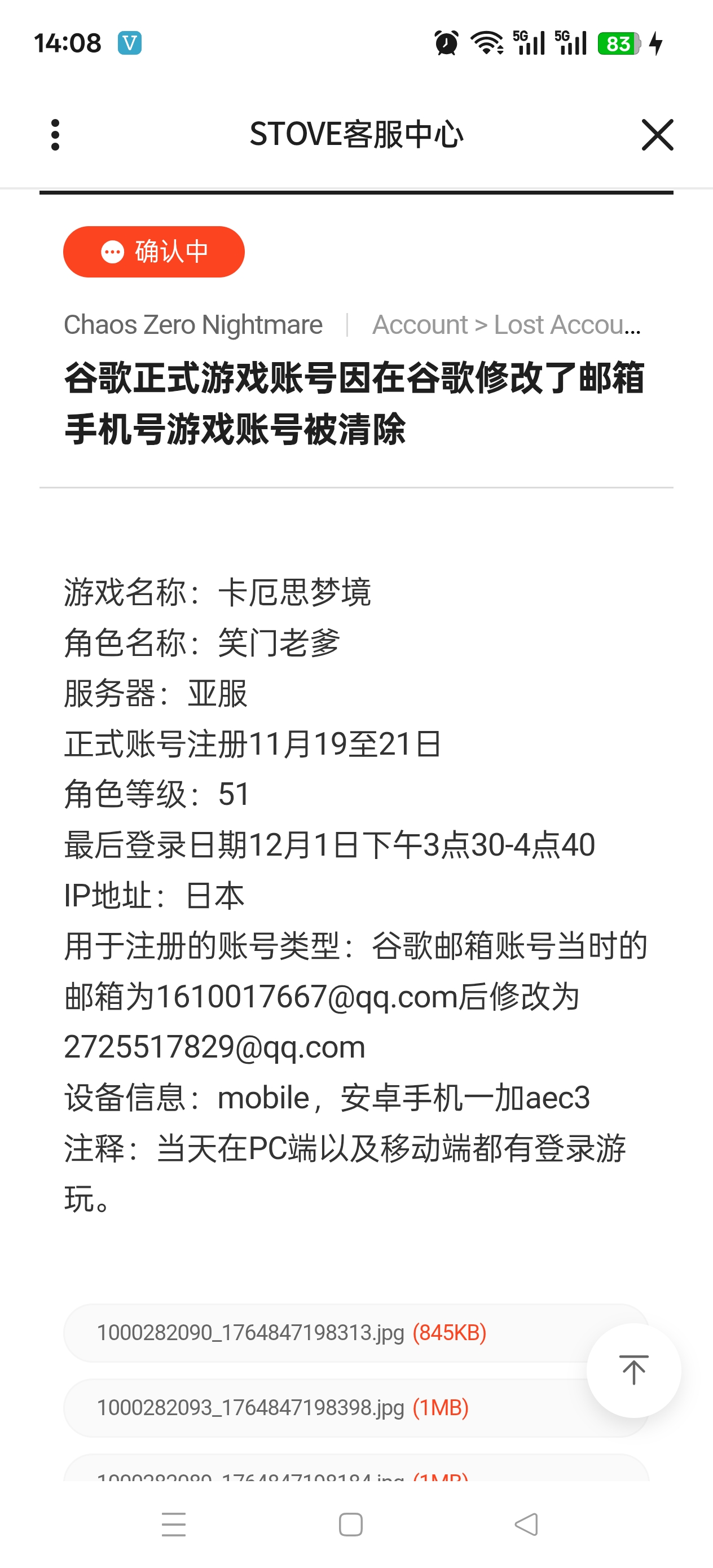 关于账号被清除,我满怀期待等了这么多天,笑门给我的答复是这样的。我账号登上去直接是个新号了你让我证明被封禁停用?太幽默了!回复邮件里面前面提到的资料,申诉的时候都已经填写给他们了