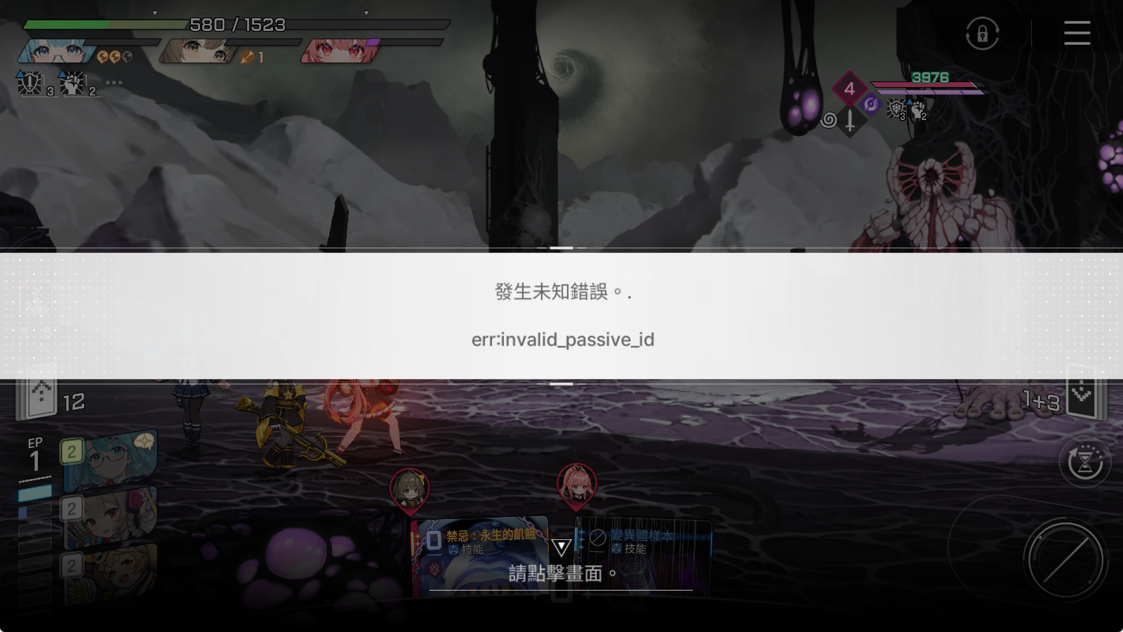 글상세回報與建議 今日更新之后,卡厄思战斗反复报错 [1] xiaolong915 2026-01-07 09:55 2026-01-07 18:55 (+09:00) view count 47 查看我的頁面 查看發布貼文 檢舉 分享 如图,已经遇到4次这种报错了,遇到之后首先游戏无法继续进行,退出游戏之后,如果你选择回到卡厄思那么恭喜你又无法继续了。如果你选择逃离,那么恭喜你,卡厄思进度白打,存档也没了。这个问题在今天更新之前都没有,很确定就是更新出的bug,是不是应该补偿点什么。 留言 1 alarm 已解除通知。 依最新順序 依最新順序 依登錄順序 依推薦順序 如果要留言 登入 請。 OFFICIAL 卡厄思夢境 2026-01-08 00:07 2026-01-08 09:07 (-NaN:NaN) 查看我的頁面 查看發布貼文 你好。首先,對於因相關現象給遊戲使用帶來不便表示誠摯的歉意。爲了解決相關問題而進行的chaos [逃脫] 請進行,用上述方法也無法解決時請到遊戲內客服中心諮詢,我們會盡快幫助您解決。謝謝。 確認 取消 確認