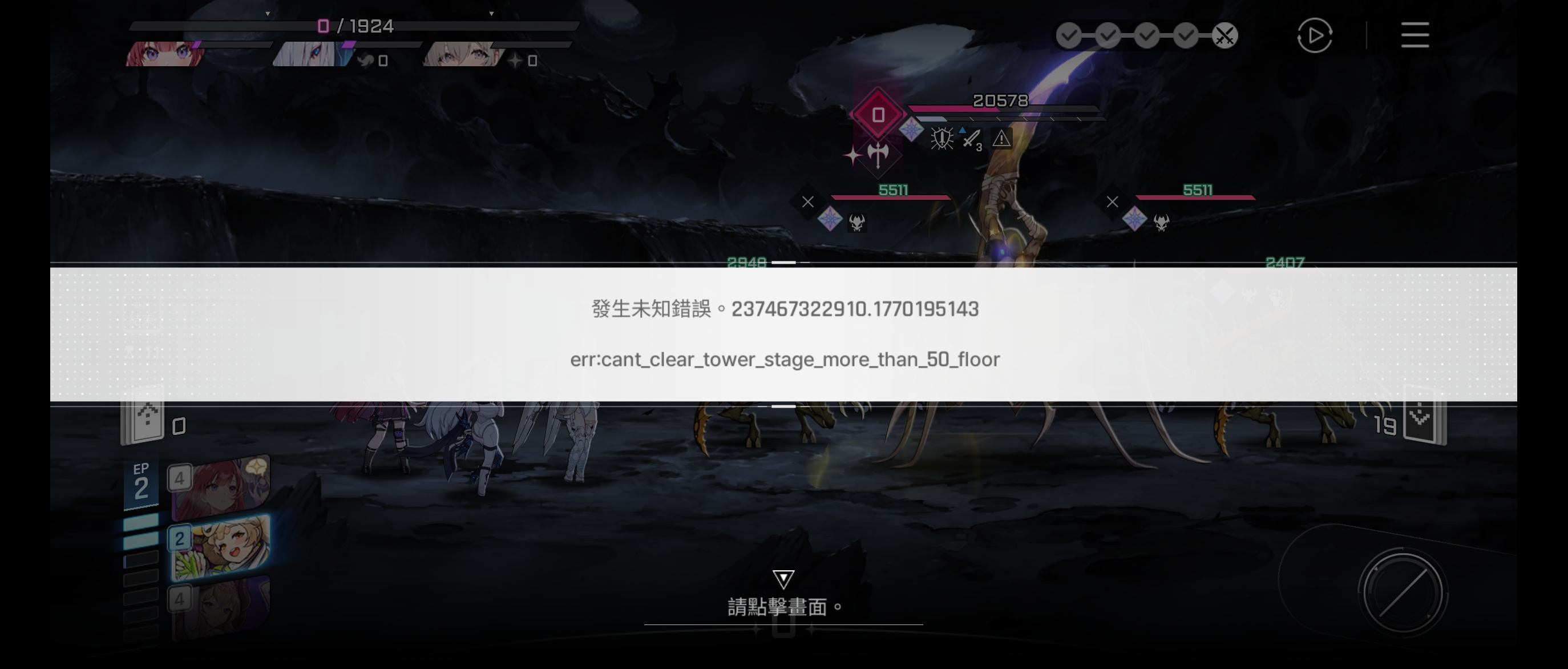글상세回報錯誤 哀嚎螺旋塔-非常严重的BUG [4] S1767177552924012 2026-02-04 08:54 2026-02-04 17:54 (+09:00) view count 83 查看我的頁面 查看發布貼文 檢舉 分享 队伍已经死亡但是无法退出了,不断报错,也无法脱逃。现在已经无法游玩了! 留言 4 alarm 已解除通知。 依最新順序 依最新順序 依登錄順序 依推薦順序 如果要留言 登入 請。 S1769681097528611 2026-02-04 12:50 2026-02-04 21:50 (+09:00) 查看我的頁面 查看發布貼文 檢舉 晚間8.30左右 打零號也卡住 S1761040066695911 2026-02-04 10:44 2026-02-04 19:44 (+09:00) 查看我的頁面 查看發布貼文 檢舉 S1762848371550611 2026-02-04 10:16 2026-02-04 19:16 (+09:00) 查看我的頁面 查看發布貼文 檢舉 同樣發生 S1767177552924012 發文者 2026-02-04 08:55 2026-02-04 17:55 (+09:00) 查看我的頁面 查看發布貼文 檢舉 发生在挑战75-80层时 確認 取消 確認