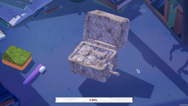 이미 사이즈때문에 포기한 부분이 많았어요. 현재는 [Assemble With Care] 랑 거의 같은 방식으로 아웃게임이 진행되는데, 원래는 일종의 방탈출 처럼 방에 물건들이 놓아져 있고, 하나씩 닦다보면 공간도 완전히 깨끗해지는 방식도 생각했거든요.