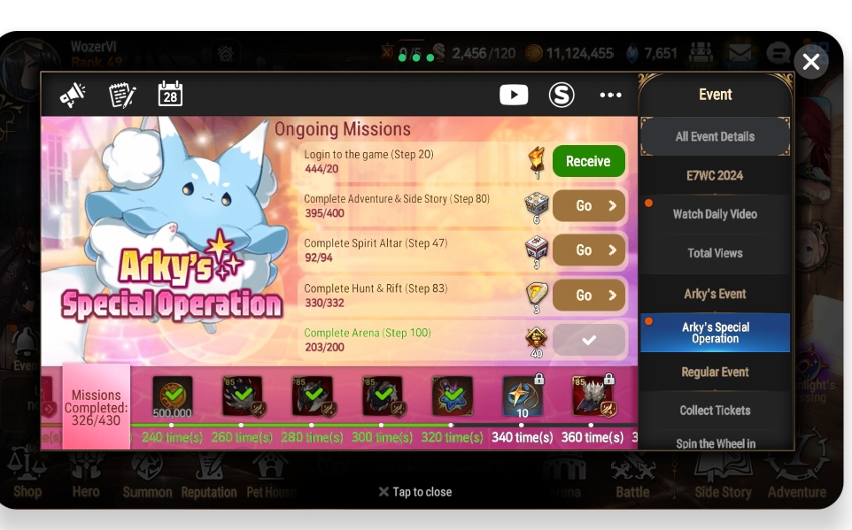 After looking at events with arky's special operation I saw I had 444 logins when I logged only 20 times when event was on for me