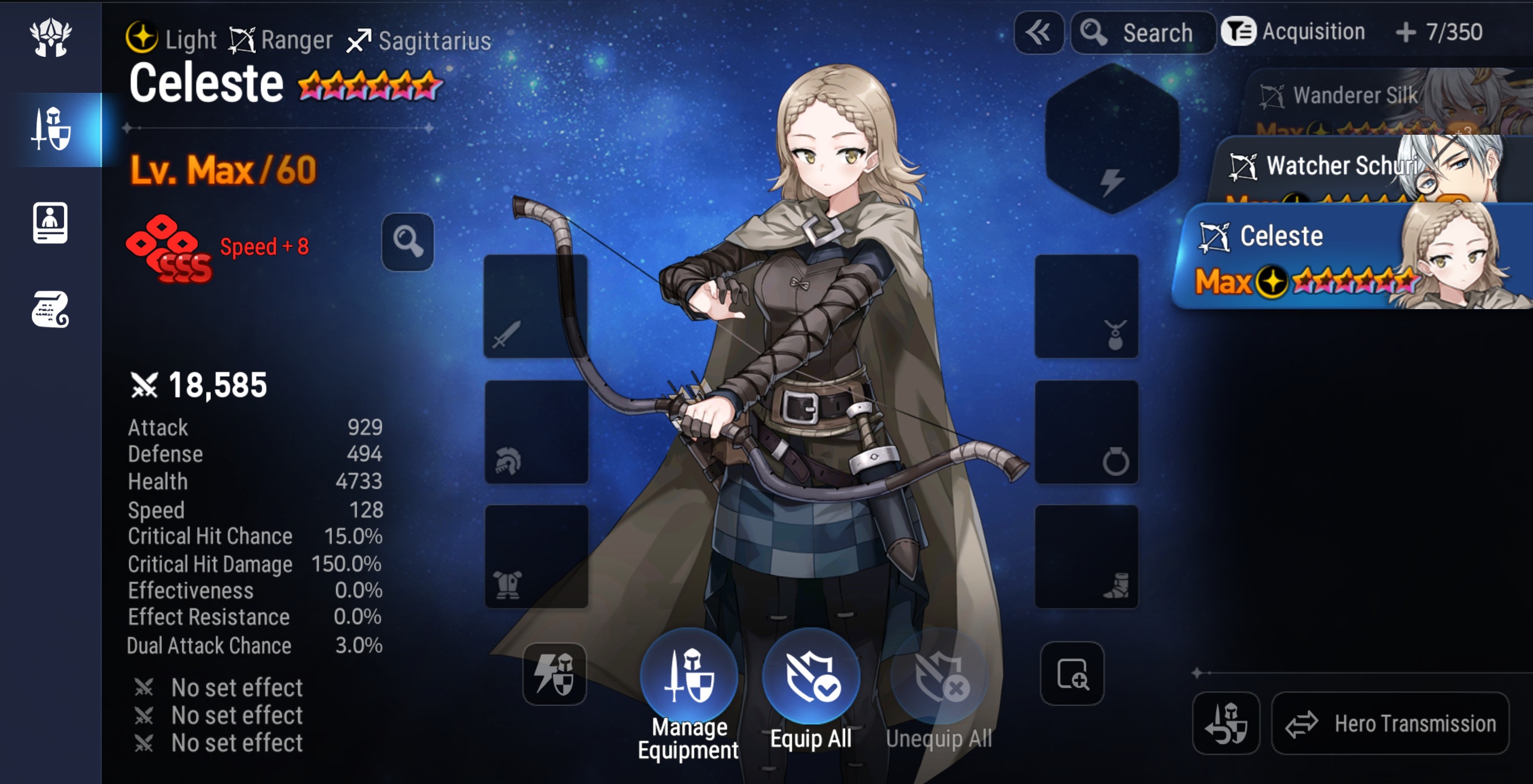 ▲ Celeste: Despite being a 3★ Hero, Celeste can seize the tempo of a match with her high basic Speed, Speed Memory Imprint, and the Artifact, Renewed Will.