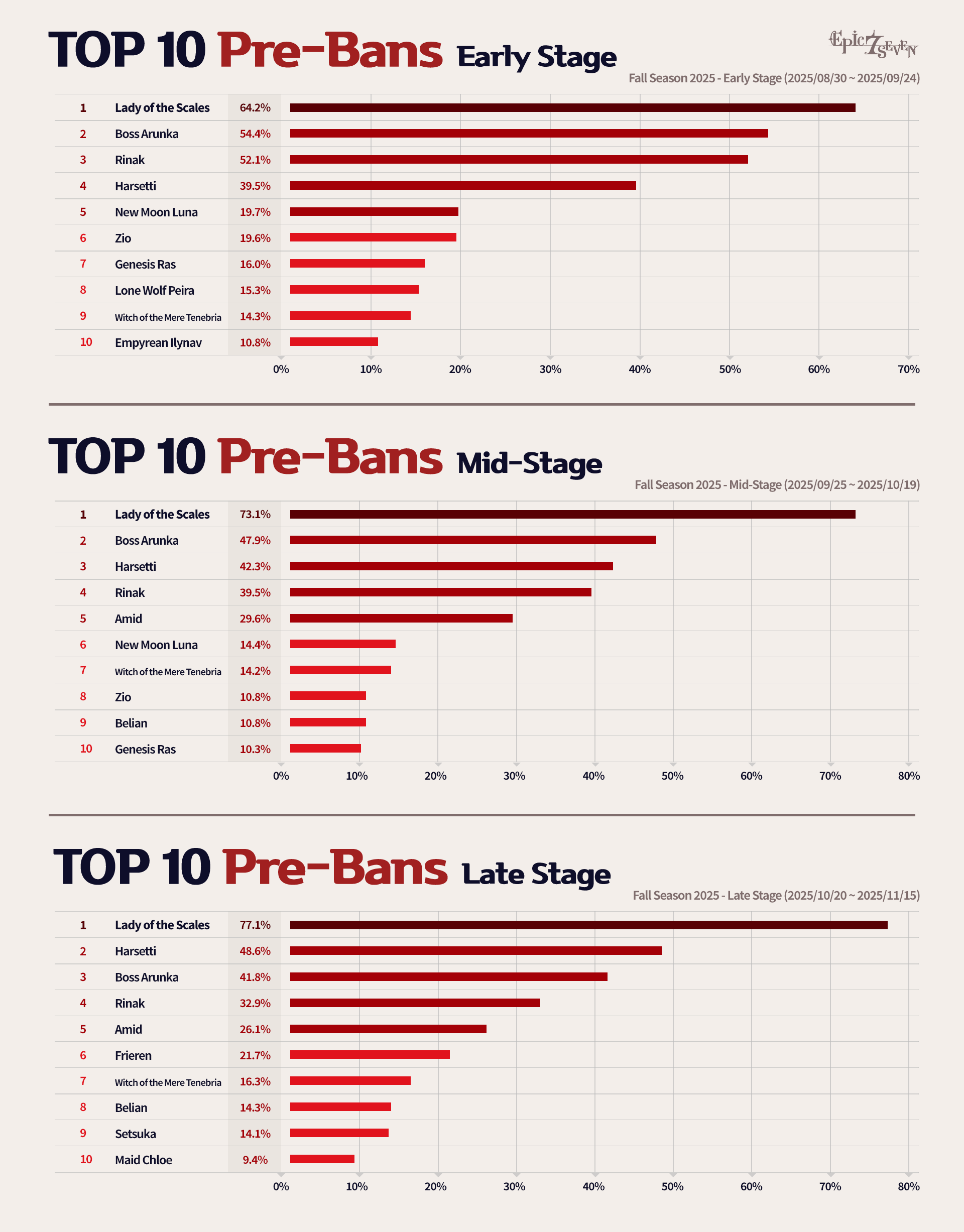 * Based on the Fall 2025 Season, you can view the pre-ban data for Champion league and above matches, divided into the entire season as well as early, mid, and late stages.