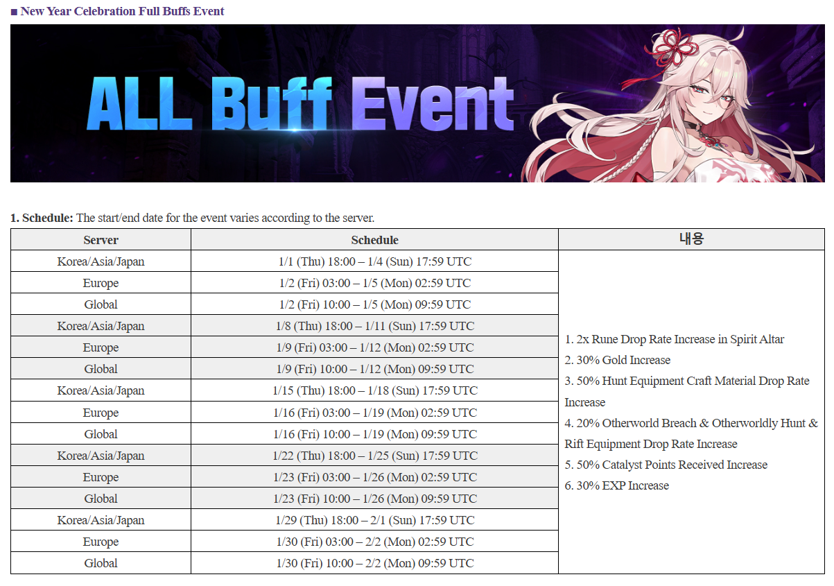 Hey! I see you don't know but buff events will be there all January. You'll see tomorrow