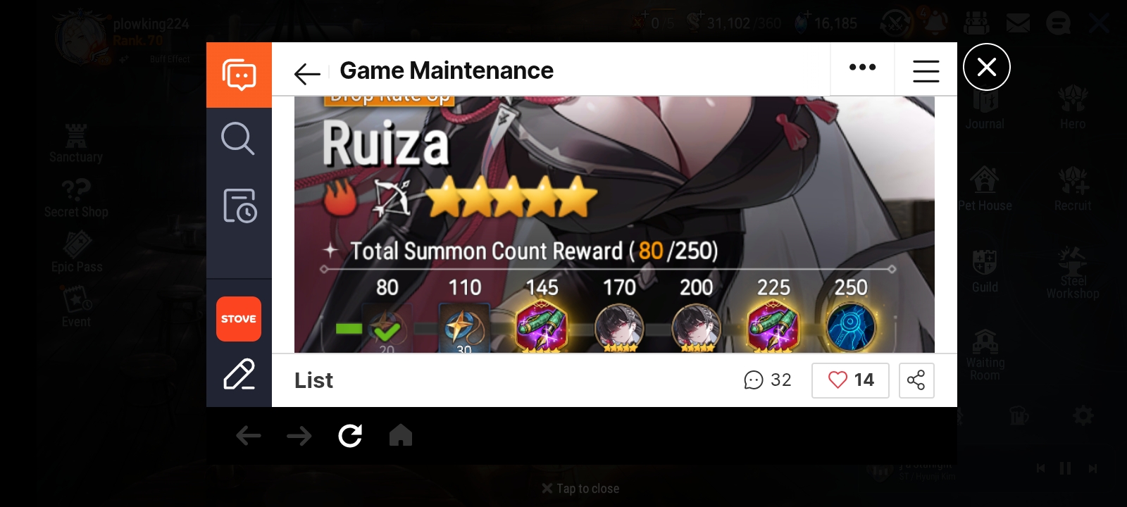 At the end of the 2025-3 Season, the Guild War Tournament will be held featuring the top 32 Guilds.