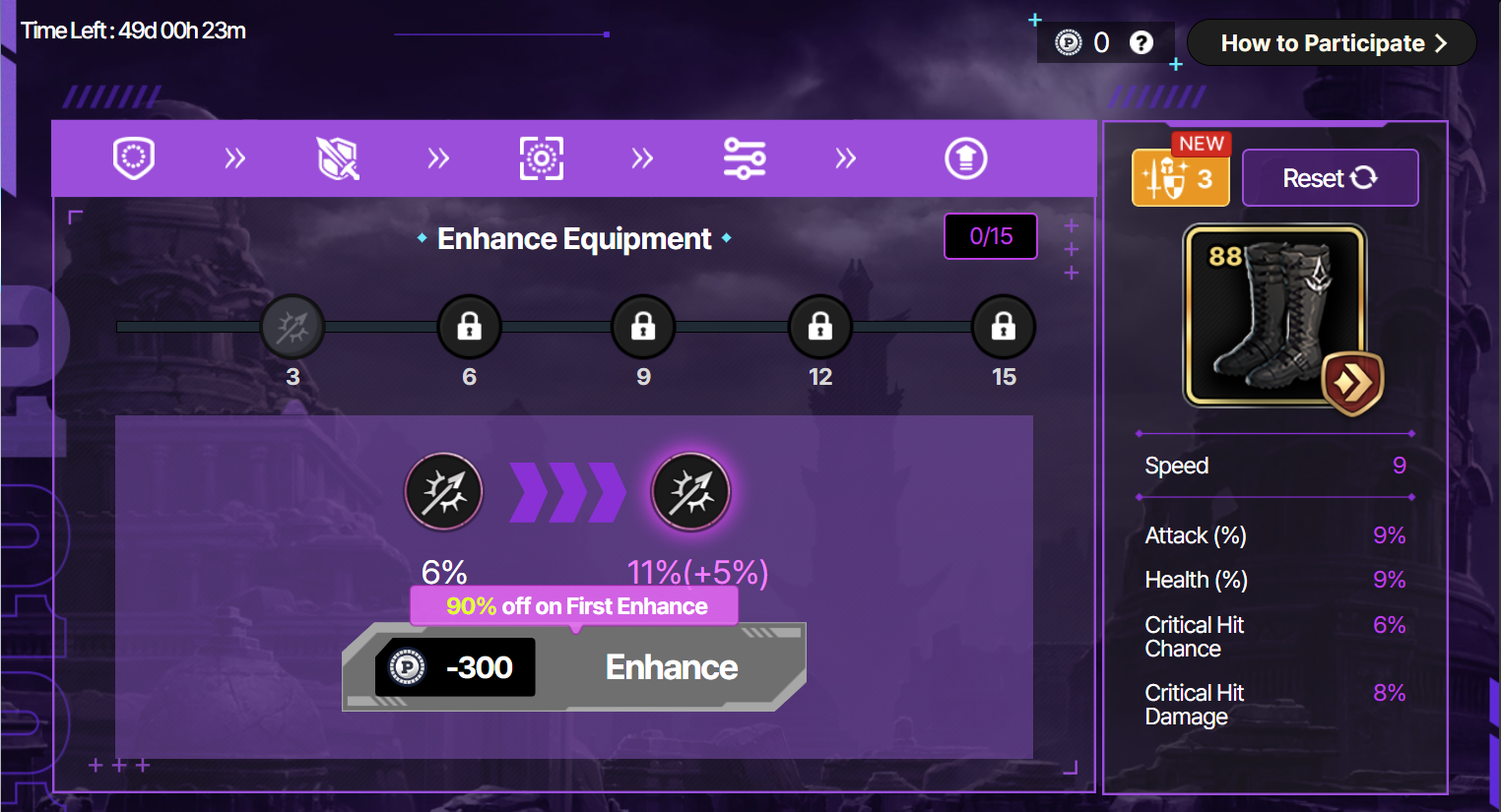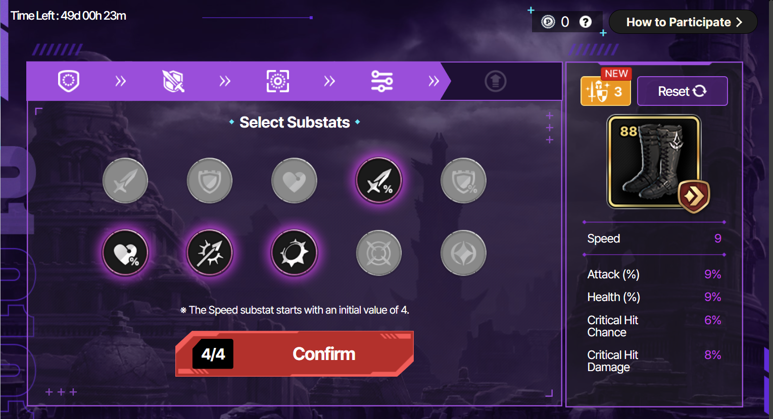 STEP 5. Equipment Enhancing: Select one of 4 substats to enhance.