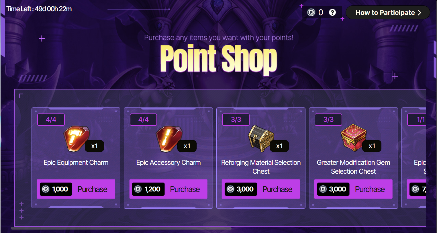 3. Remaining Points: After the event ends, you will have an additional 7 days to use any remaining points. (Cannot acquire more points during this period.)