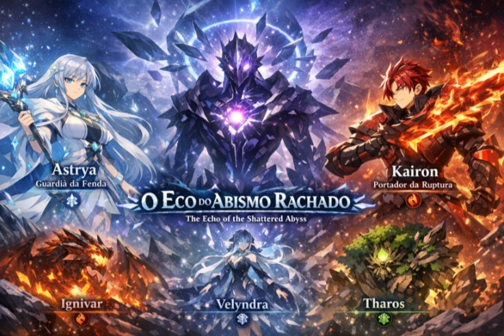 "Conforme mencionado no post, seguem as imagens ilustrativas dos personagens e chefes (Astrya, Kairon, Ignivar, Velyndra e Tharos).Nota: Estas ilustrações foram geradas com auxílio de IA para representar visualmente o conceito da sugestão. Espero que ajude na visualização!"